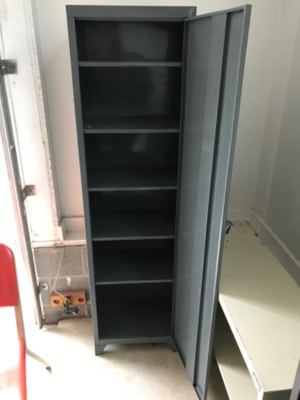 Metal cabinet 5’6”x 18” wide x 12” deep with 6 shelves