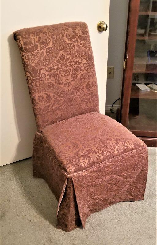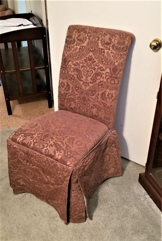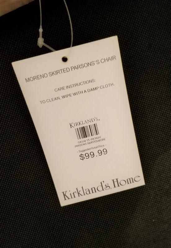 This single skirted Parson's chair still has the original tag from Kirkland's attached ($99.00). Clean, good condition.