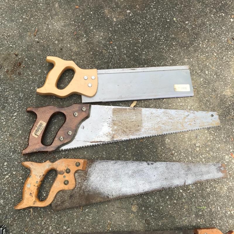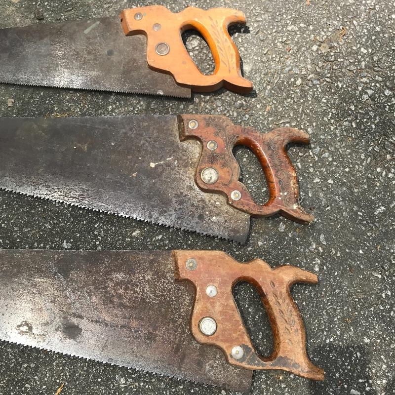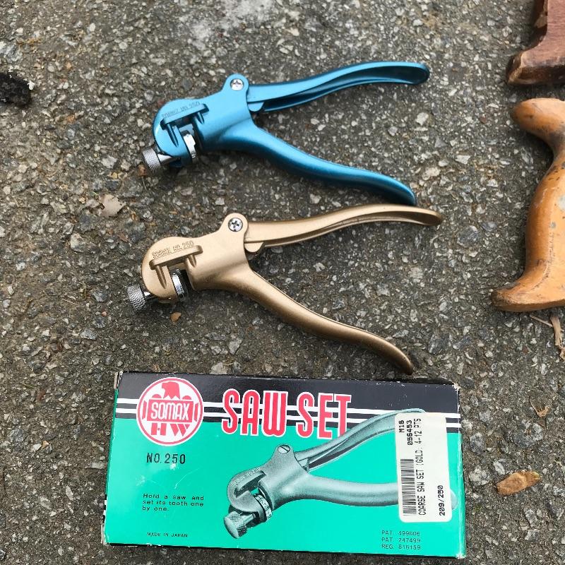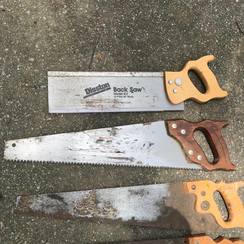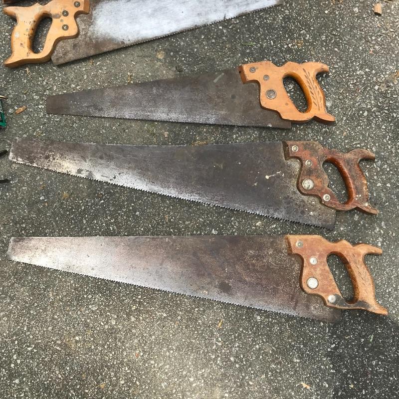 Six saws in decent pre-owned shape. The smallest blade is the Disston Back Saw at 14” while the other blades range from 20” to 26”. Lot also includes three saw sets, two are Somax No. 250 and look barely used. See photos. Local pick up only.