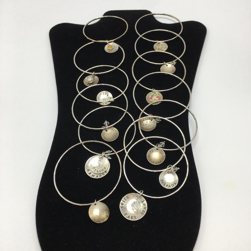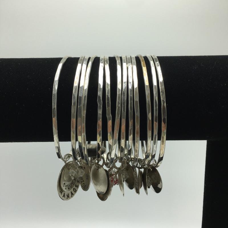 Thirteen Silpada sterling silver bangle bracelets with charms. These are sales associate awards but can be worn as an addition to your bangle collection. Don’t miss out on these fun bangle bracelets in sterling silver. Starting price based on estimated melt value of silver.