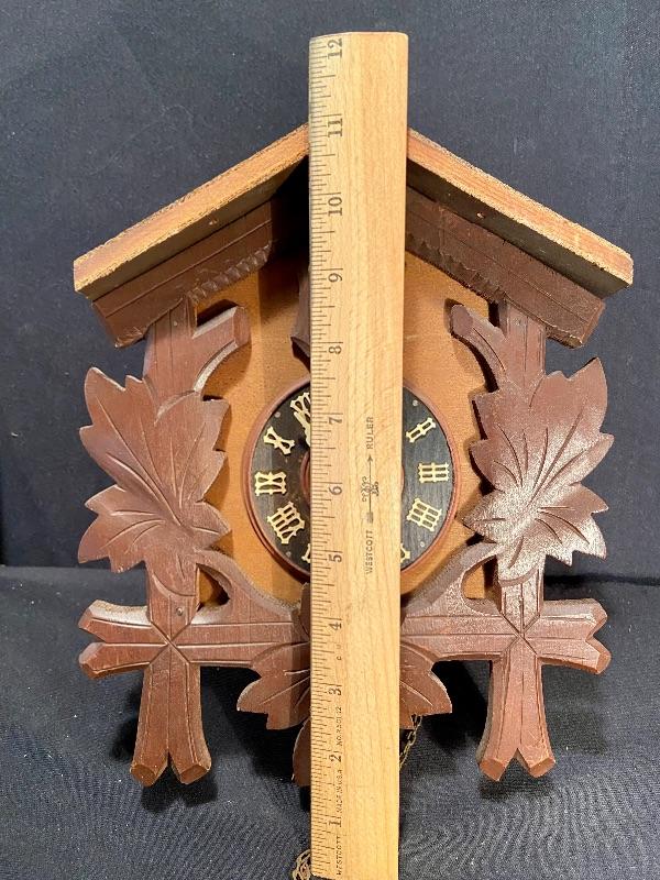2 Vintages wooden coocoo clocks with disconnected weights. See pictures for sizing MHW. Please see all pictures for content of the lot, condition of the lot, and measurements if taken. Pictures are the best representation of the items listed and items are untested unless indicated in description. Thank you for looking and have fun bidding!