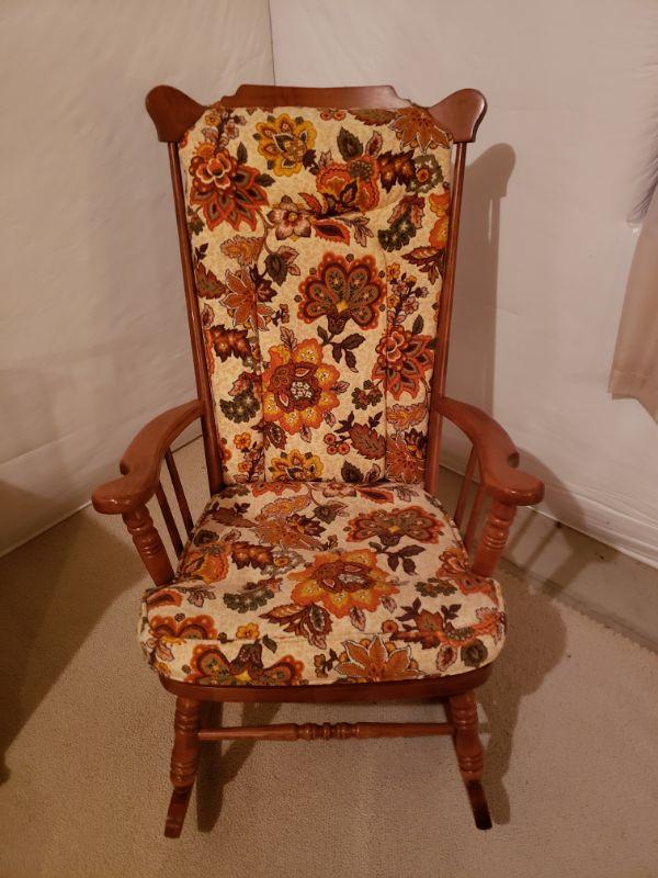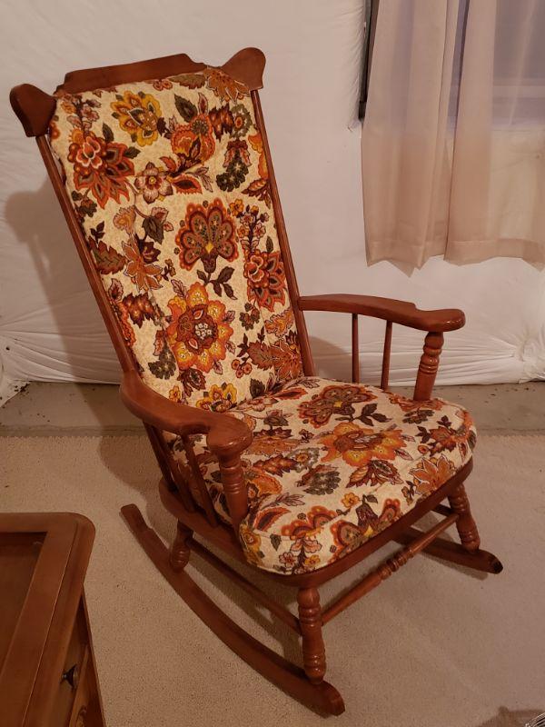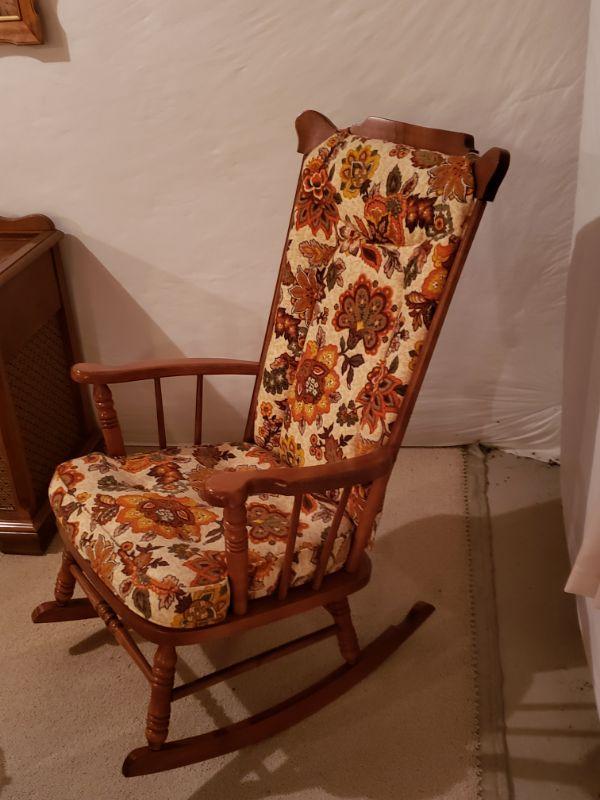 Lot 182: Vintage Rocker Chair w/ Original Flower Pattern Cushions