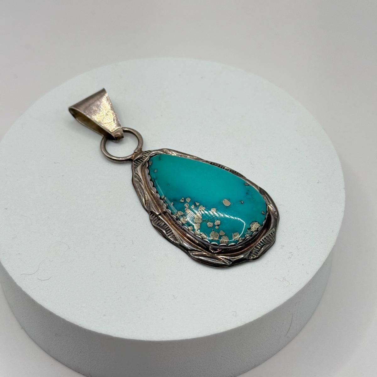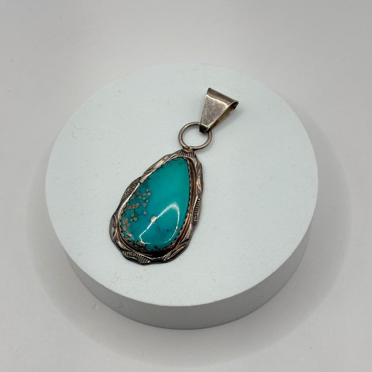 LOT 182J: Vintage HT Sterling Silver Turquoise Pendant (16.7g)