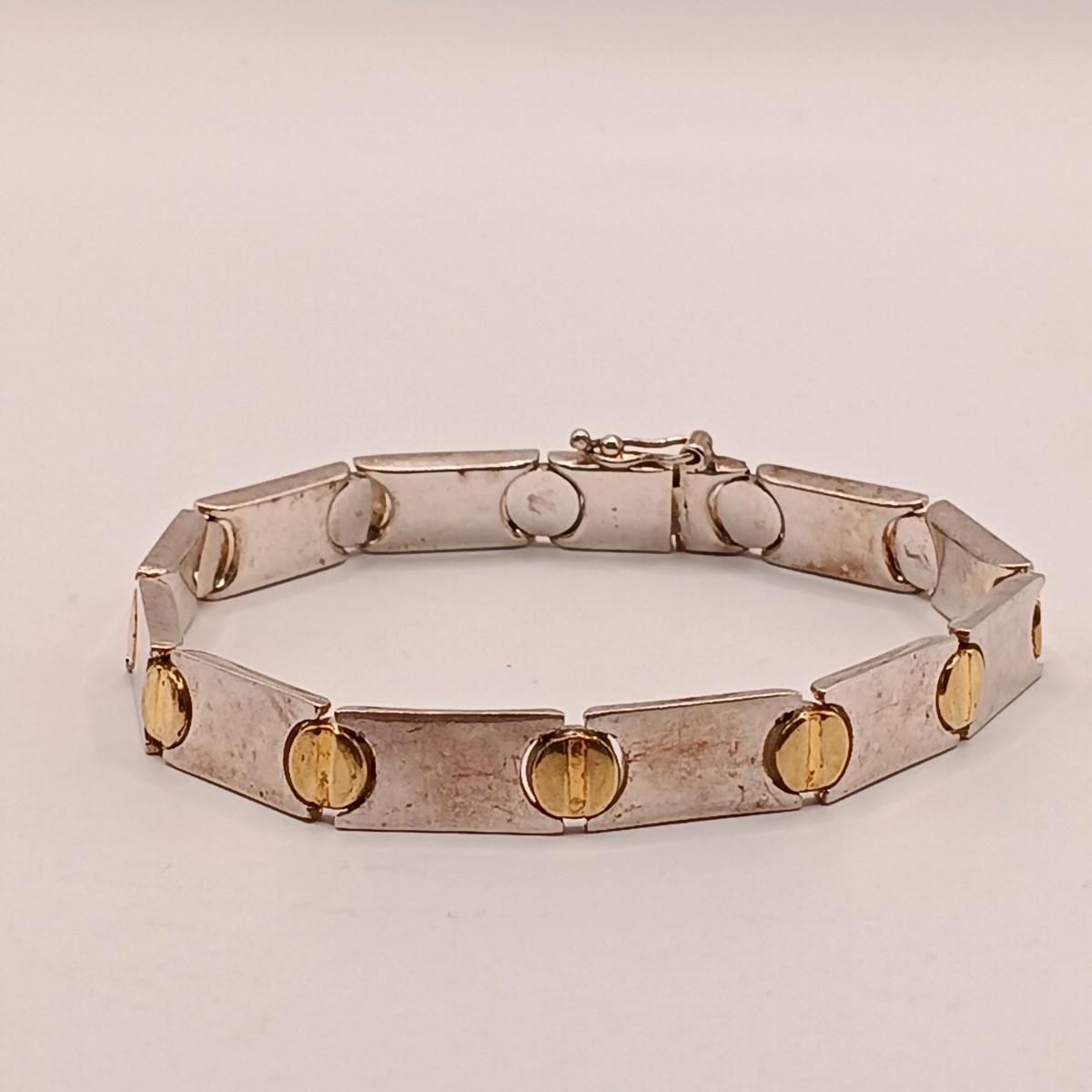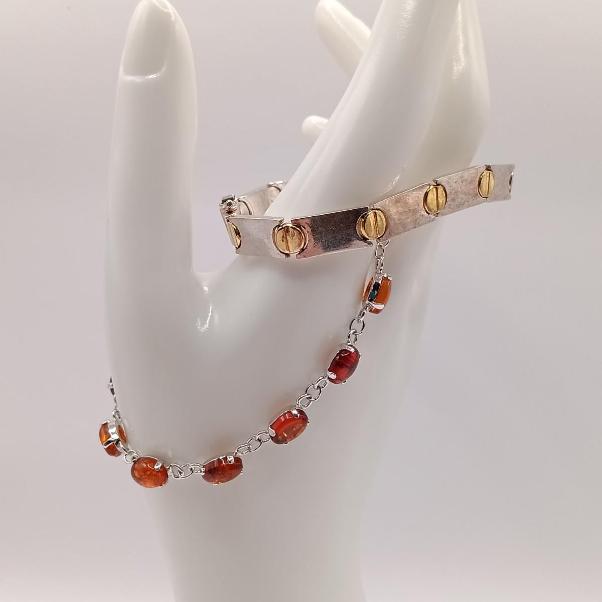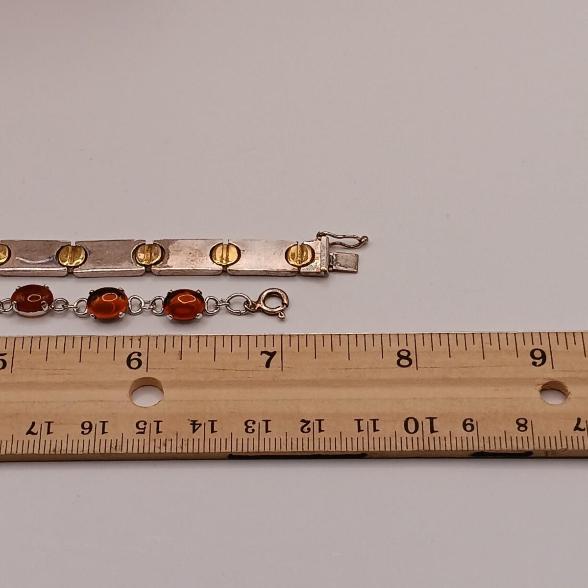 LOT 183: Vintage 925 Sterling Italy Two-Tone Bracelet with 925 Sterling and Amber Stone Bracelet
