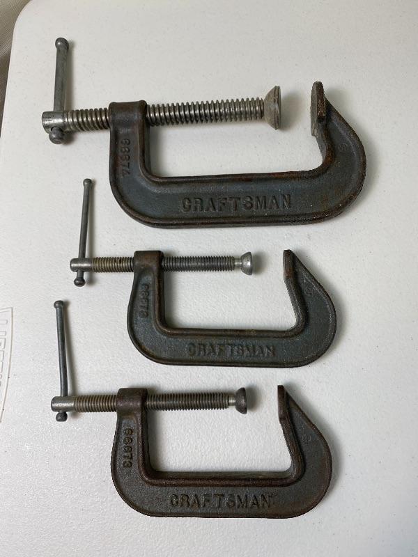 Lot# 183 3 Vintage Craftsman C-Clamps Woodworking Cabinet Making Tools