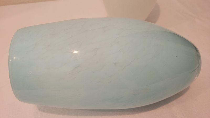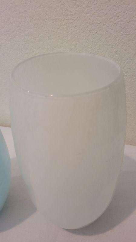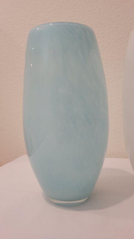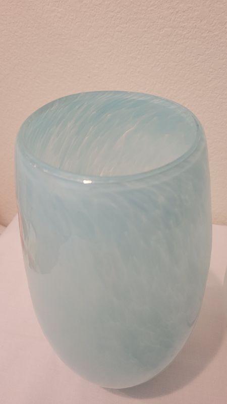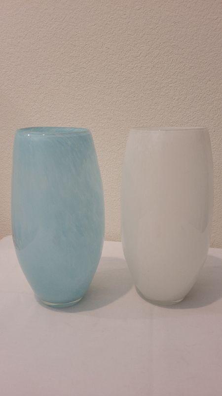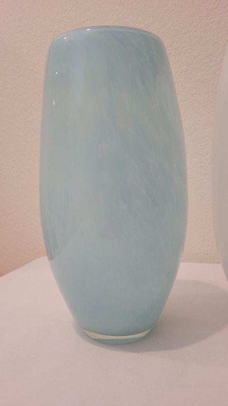 Lot 183: (2) 12" Tall Art Glass Vases - Blue and White