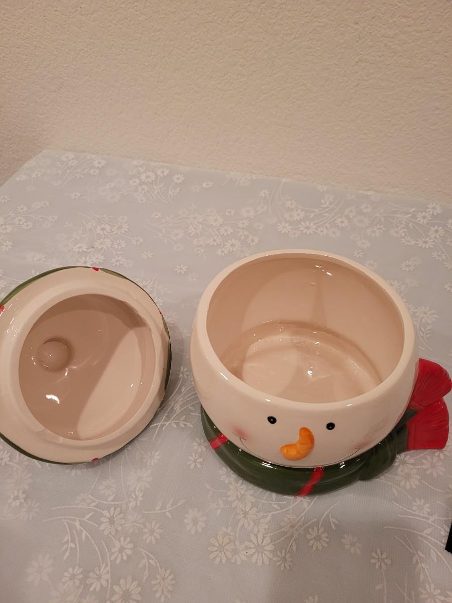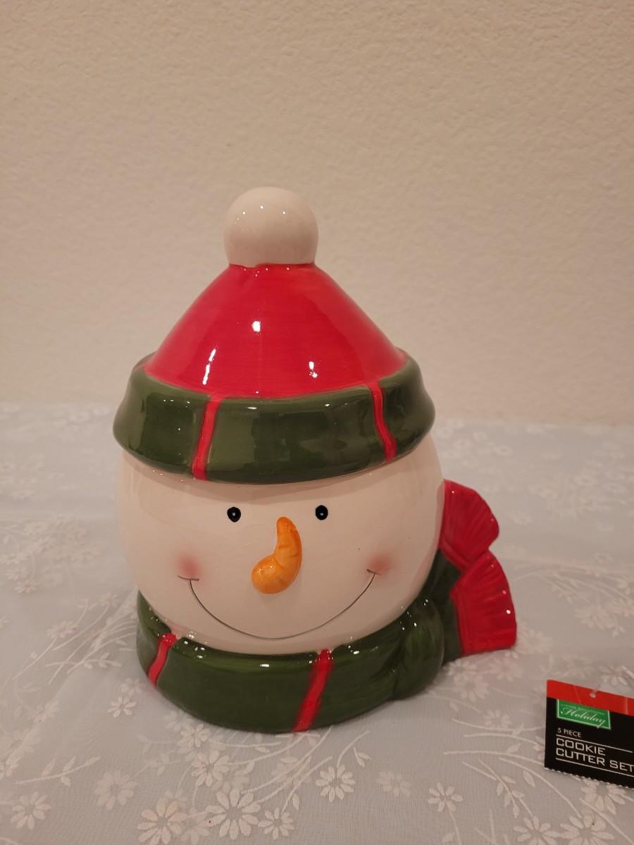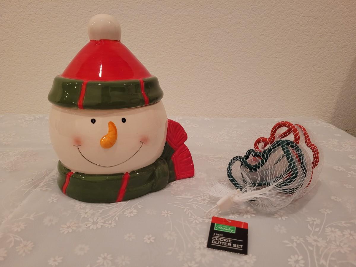 Lot 183: Snowman Cookie Jar and Holiday Cookie Cutters