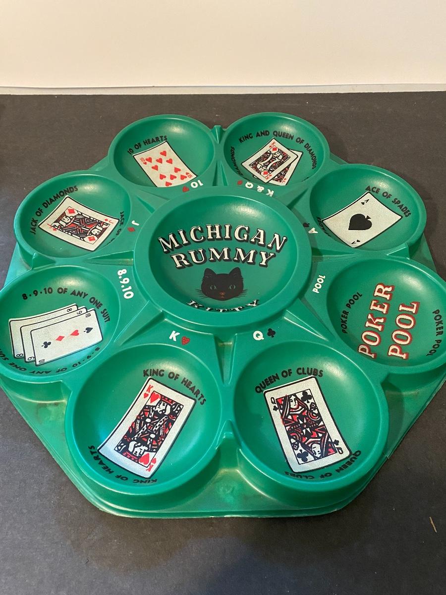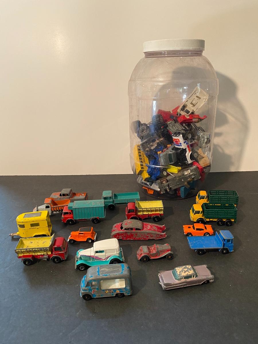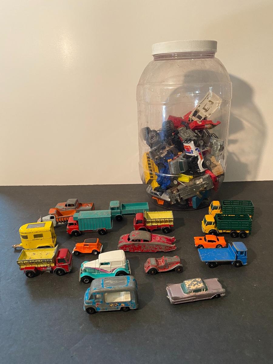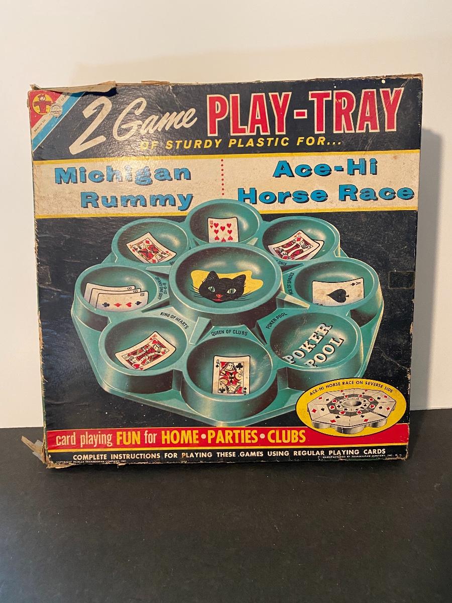 Vintage lot of mixed cars old and new, vintage complete Staunton Chess Set, and vintage Rummy Play-Tray with great graphics. Please see pictures as they are the best representation of the item, the condition of the item, and the size of the item.