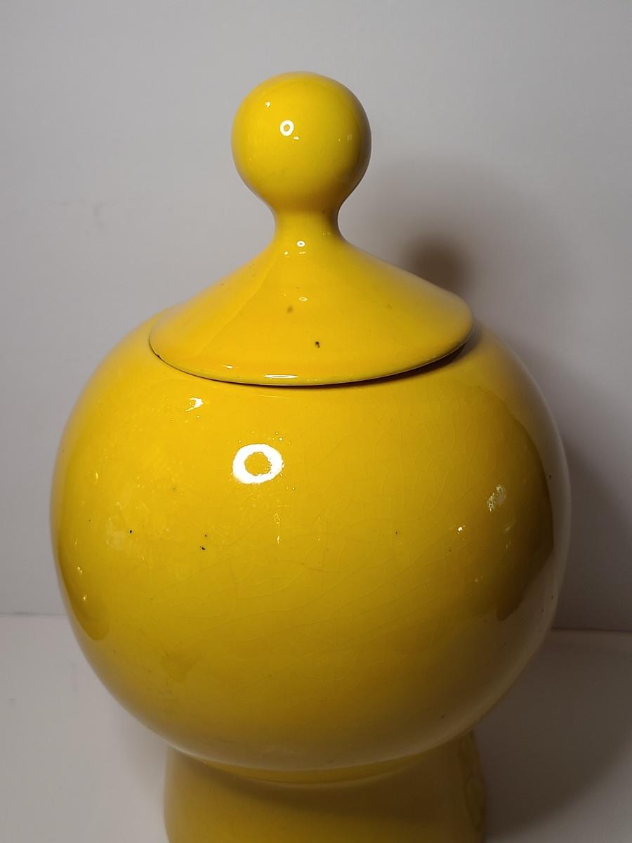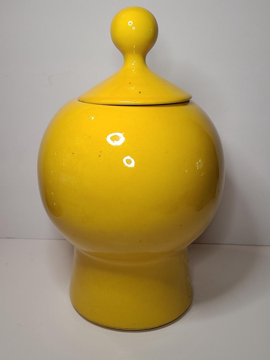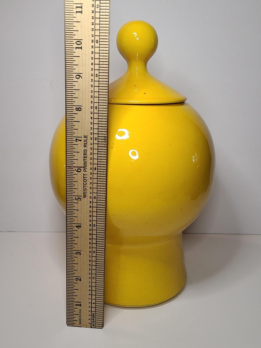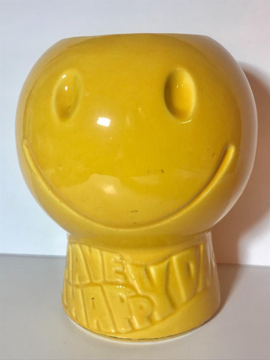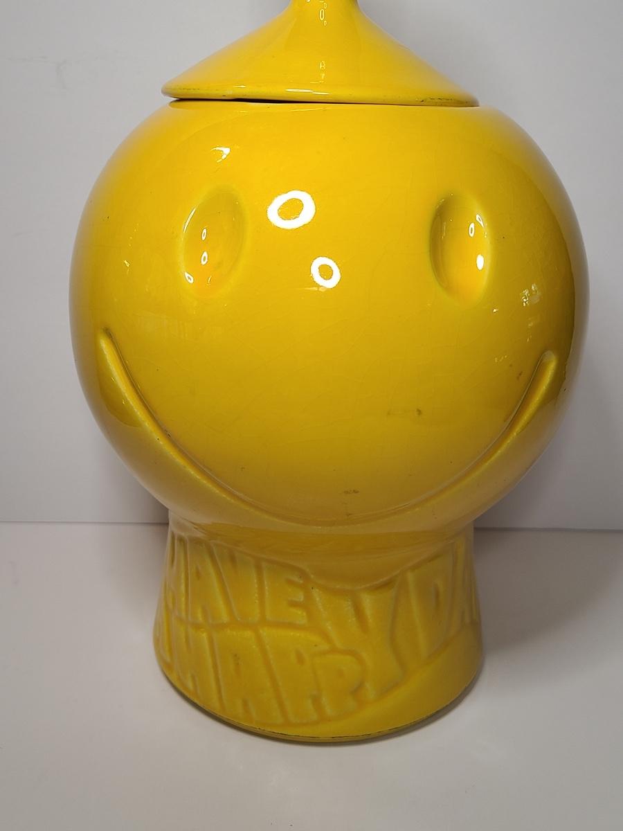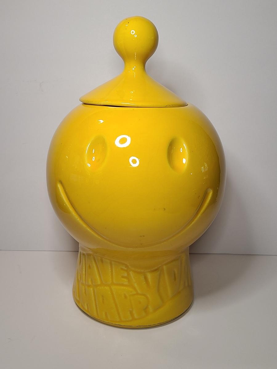 Blast from the past with this charming, bright yellow cookie jar by McCoy. This is marked but is hard to see due to age. Have a Nice Day with this Happy Face. Please see all pictures as they are the best representation of the items. The pictures show condition, measurements if taken, and what is included in the lot. Due to the large amount that we photograph and the time frame, we are not always able to take measurements. All items unless noted, are pre-owned and have been used. If you purchased furniture, you must bring help. We do not allow one person to carry large furniture out on their own. Bring help, tools and a truck for the safety of our client’s homes, and your personal safety. Company policy. Thank you.