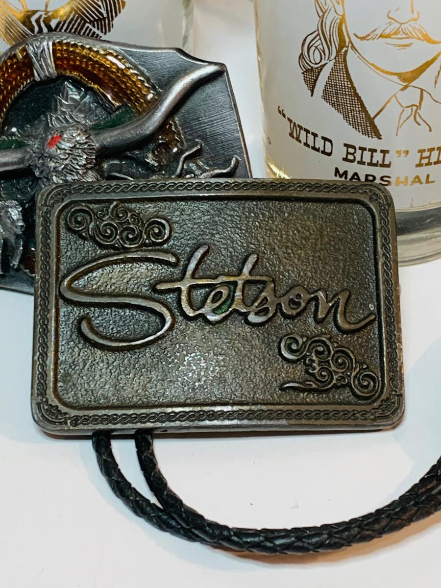 Lot 183: Stetson "Bull" & Siskiyou Belt Buckles, Bolero Tie & Vintage Western Glasses