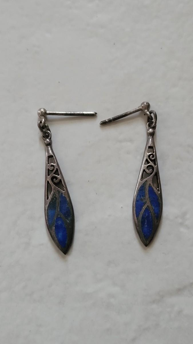 Lot 183: Vintage Sterling Blue Lapis Inlayed Earrings