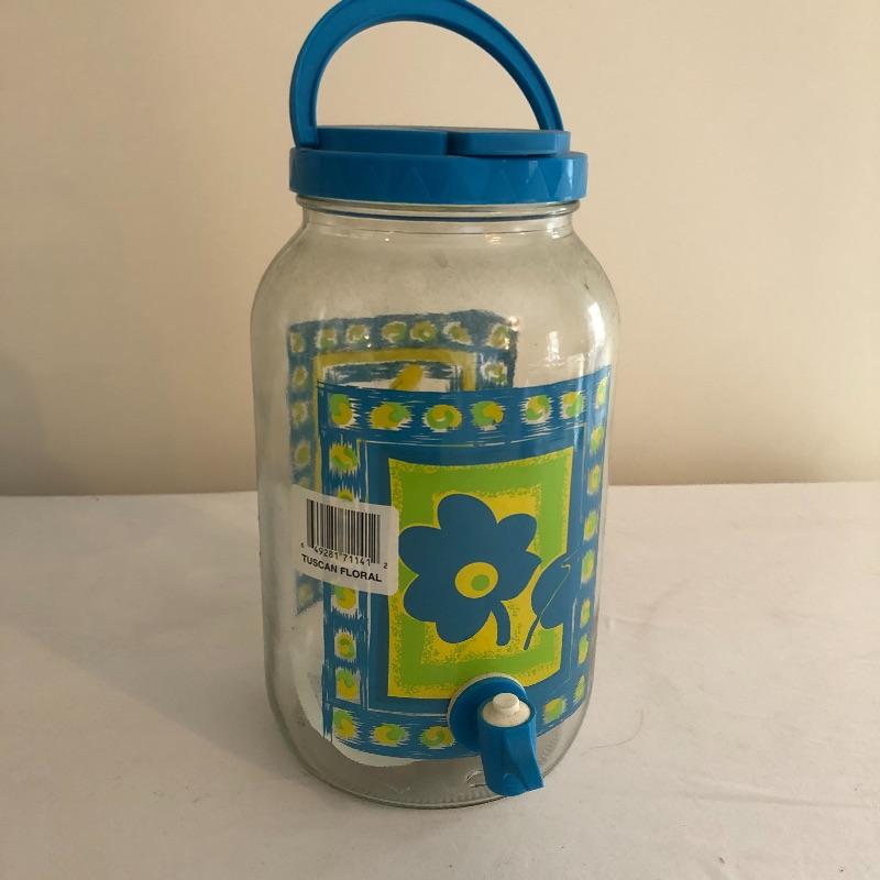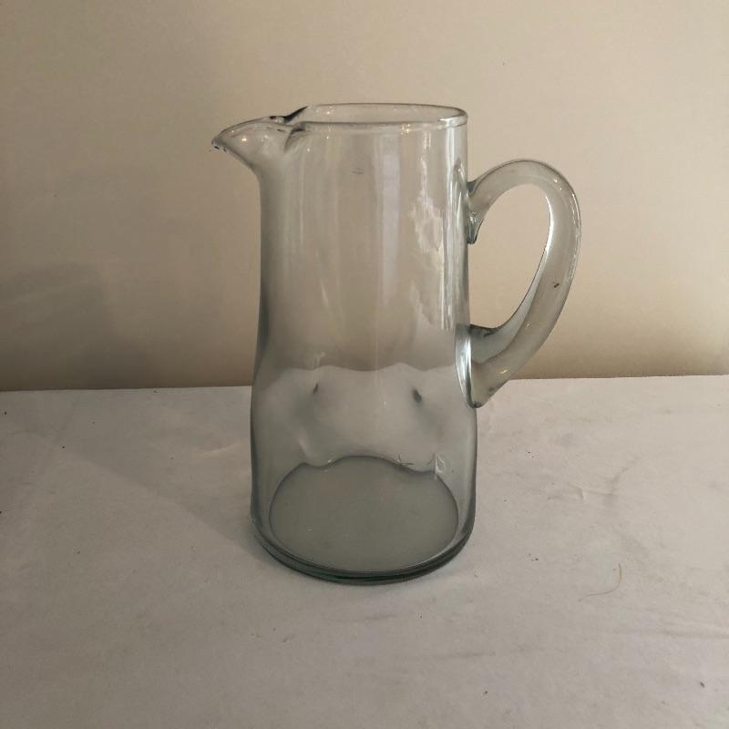Glass Pitcher measures 5.5”D x 10” tall.