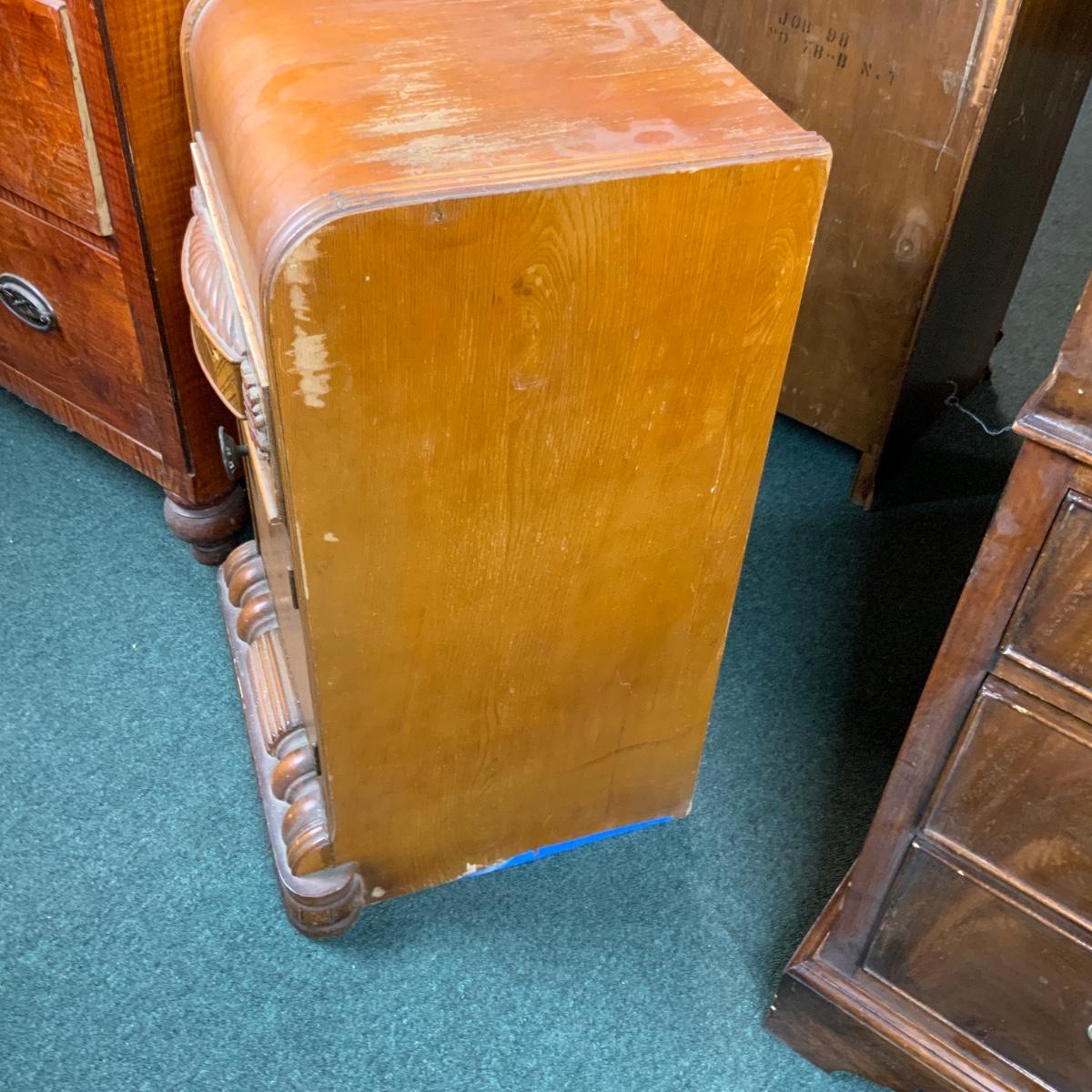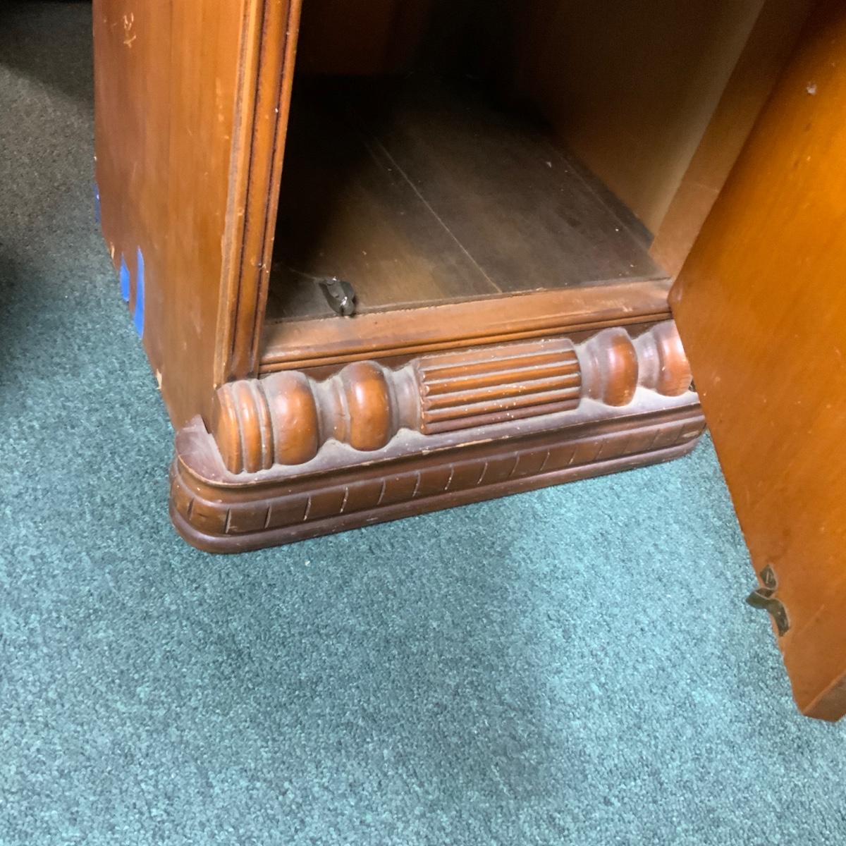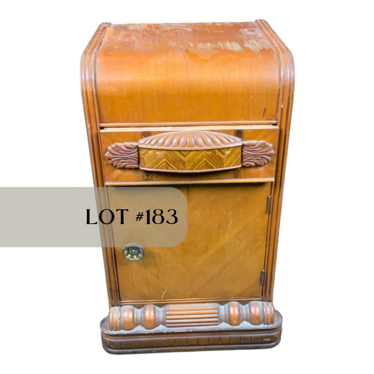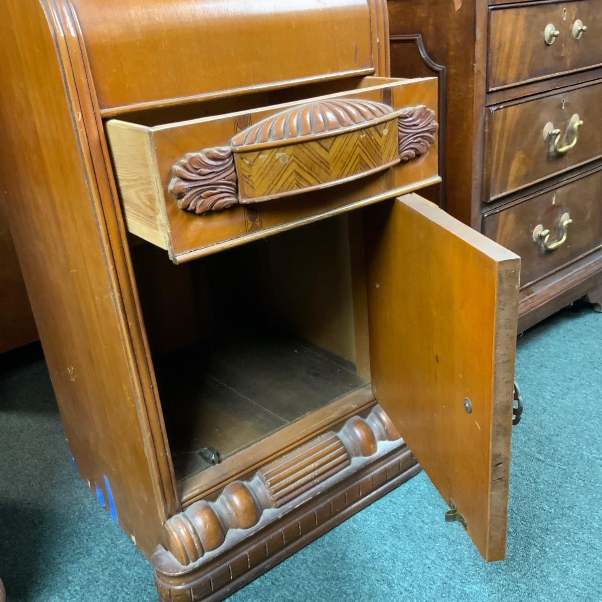 Art Deco Waterfall Nightstand. Amazing little piece. Needs the veneer repaired. //::\\ Please see photos for details and condition. No attempt has been made to hide any imperfections. All items listed in this auction are warehouse items, and need to be cleaned. A majority of the items need restoration as well. All items are sold AS IS and WITHOUT GUARANTEE. If you are uncertain about an item, DO NOT BID. Due to the nature of this online auction in-person inspection is HIGHLY recommended. All Sales are FINAL. Pick Up Times are FIRM. Please confirm with your own schedule that you can pick up in the scheduled times listed in the Terms and Conditions. Any questions please message the auctioneer. DO NOT Contact The Harp Gallery.