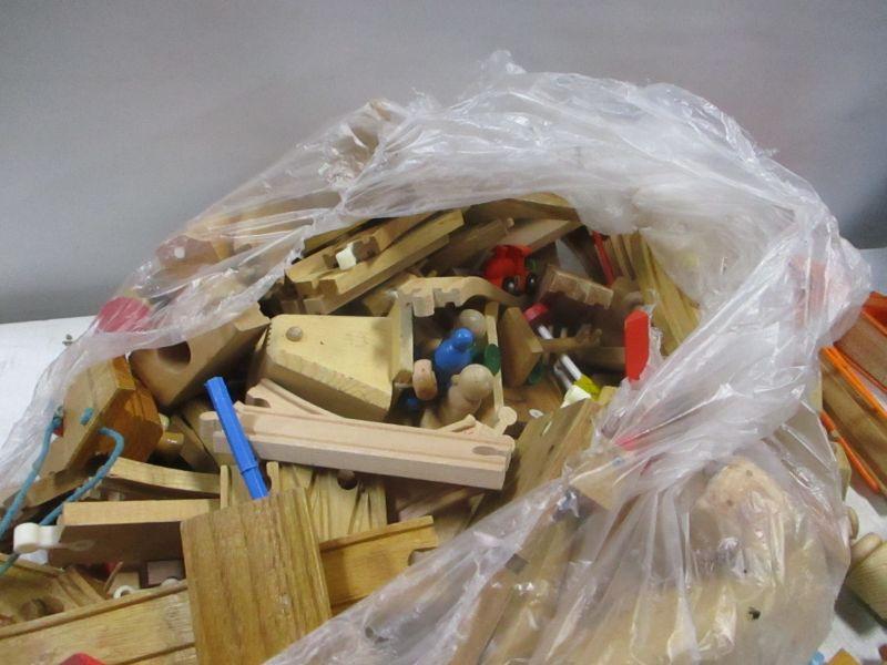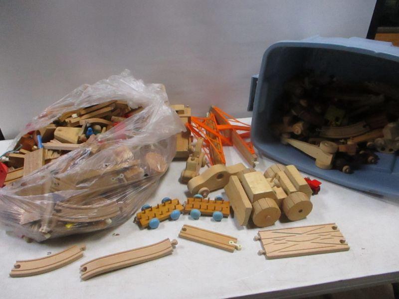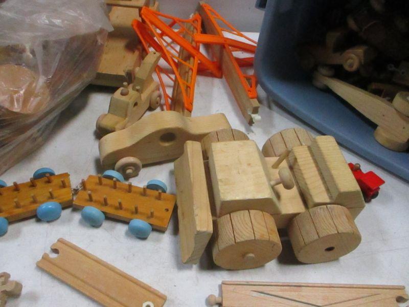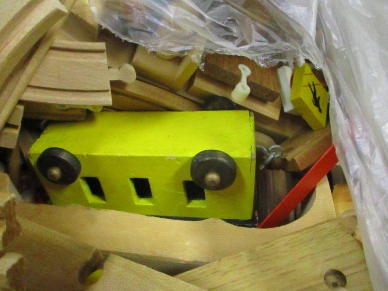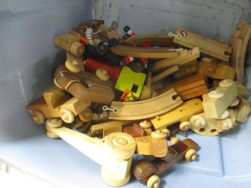 Lot 183 - Storage Container Of Wooden Toys & Parts