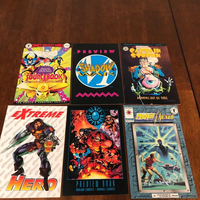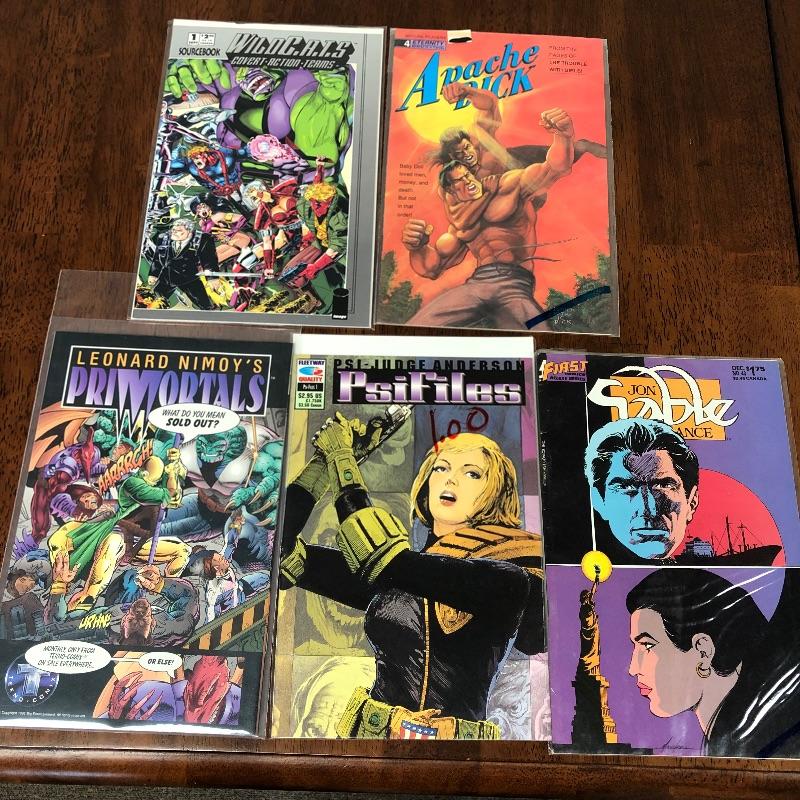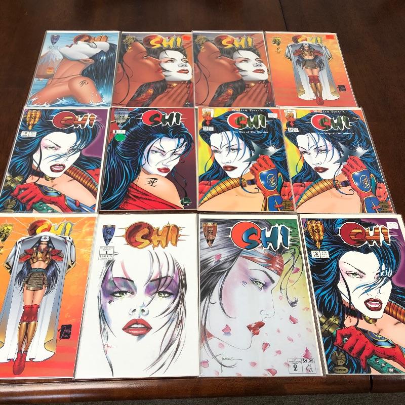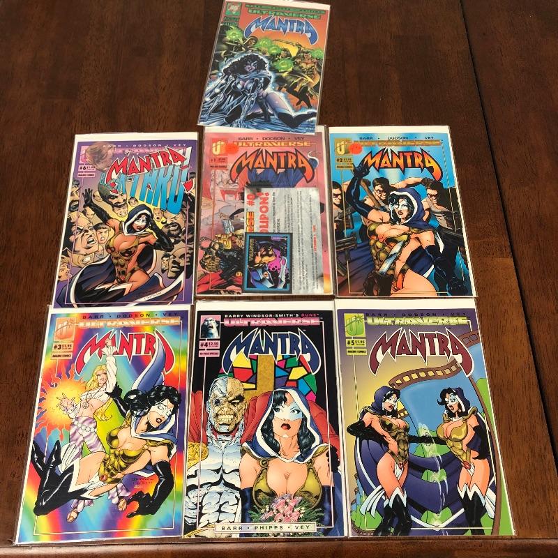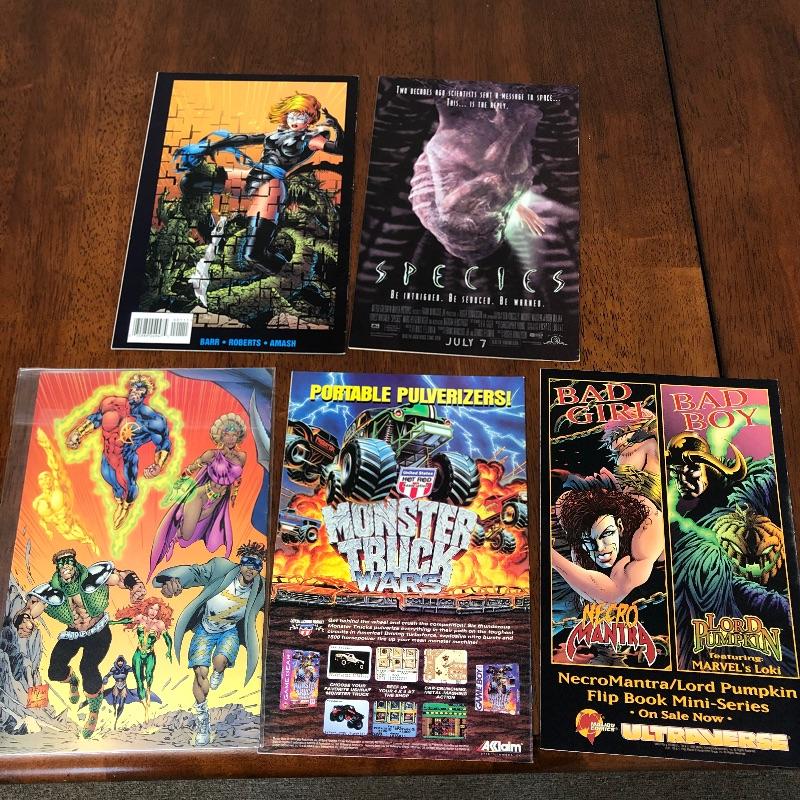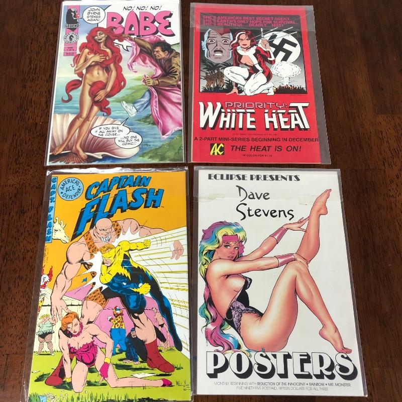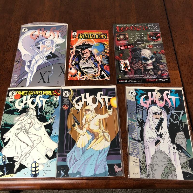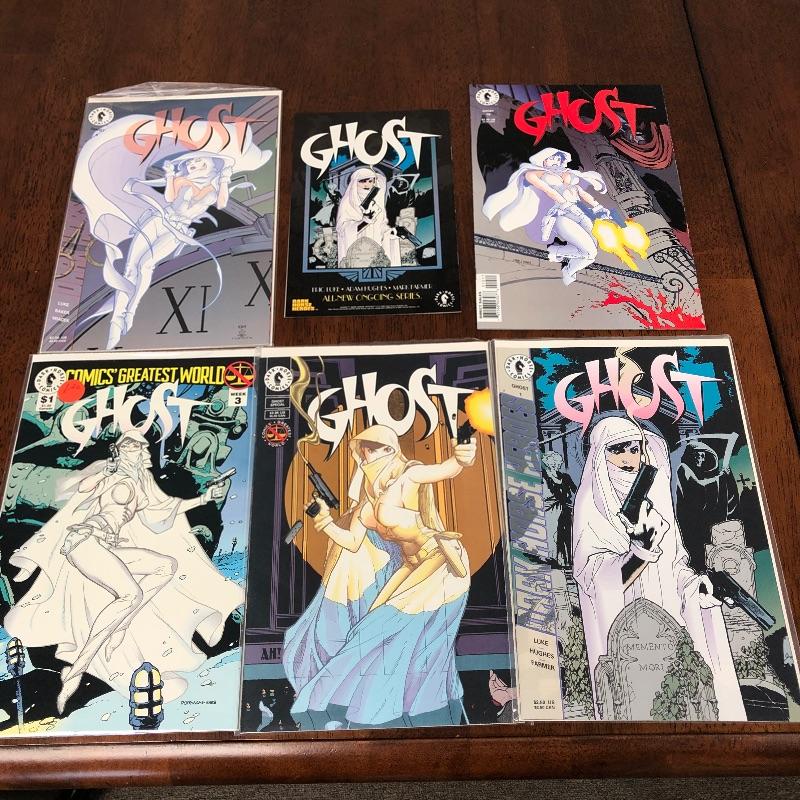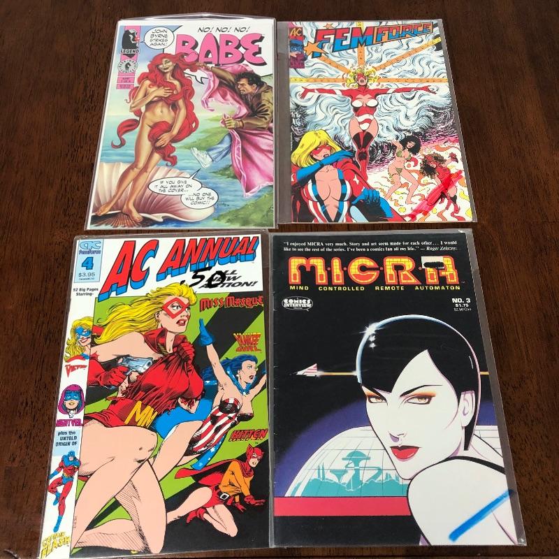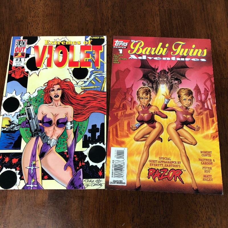 THis collection of comics is focused on the Fantasy Genre with movie supported selections like Vamiprella, Elvira, Zorro, Barb wire and Avengelyne. Comic focused selections like Ultraverse, Valiant, Green Hornet, WILD CATS, AirBoy, Mike Danger and Tomoe are found in this lot as well as the more artistic ones like She, Ghost, Bettie Page, Lady Death, Glory and more. This selection would go great with the collector card versions in lots 65 & 66.