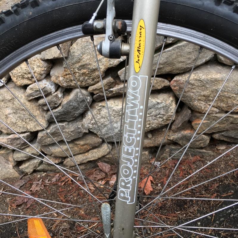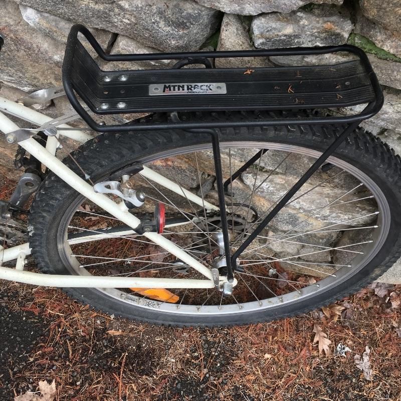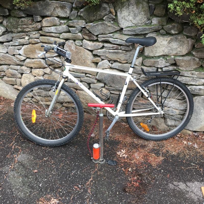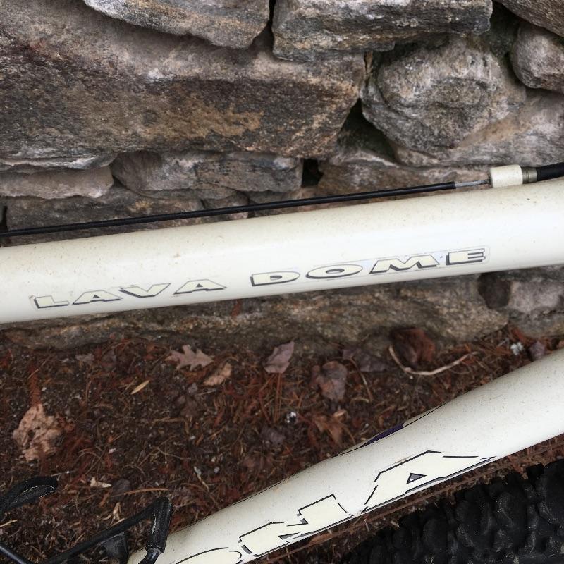 Kona Lava Dome designed by Joe Murray twenty one speed mountain bike. Bike has Shimano Exage gear set with Deore shifters, Sugino cranks,TFI Liberator seat 26” wheels and Blackburn Mtn rack. Also includes Meidai pump with gauge and some parts from a Thule rack. Bike measures 19”from seat post to bottom bracket. Has a sticker from Hearn’s Bike Shop.