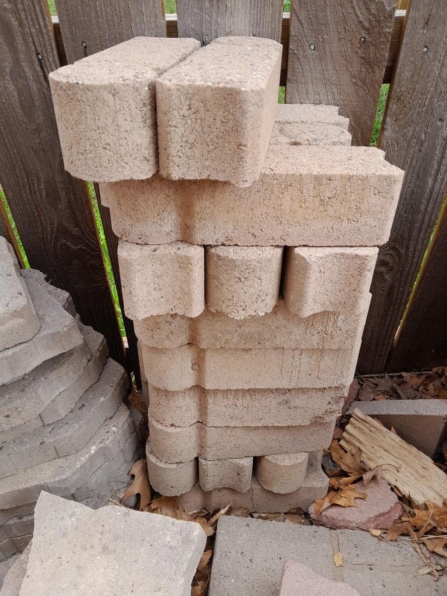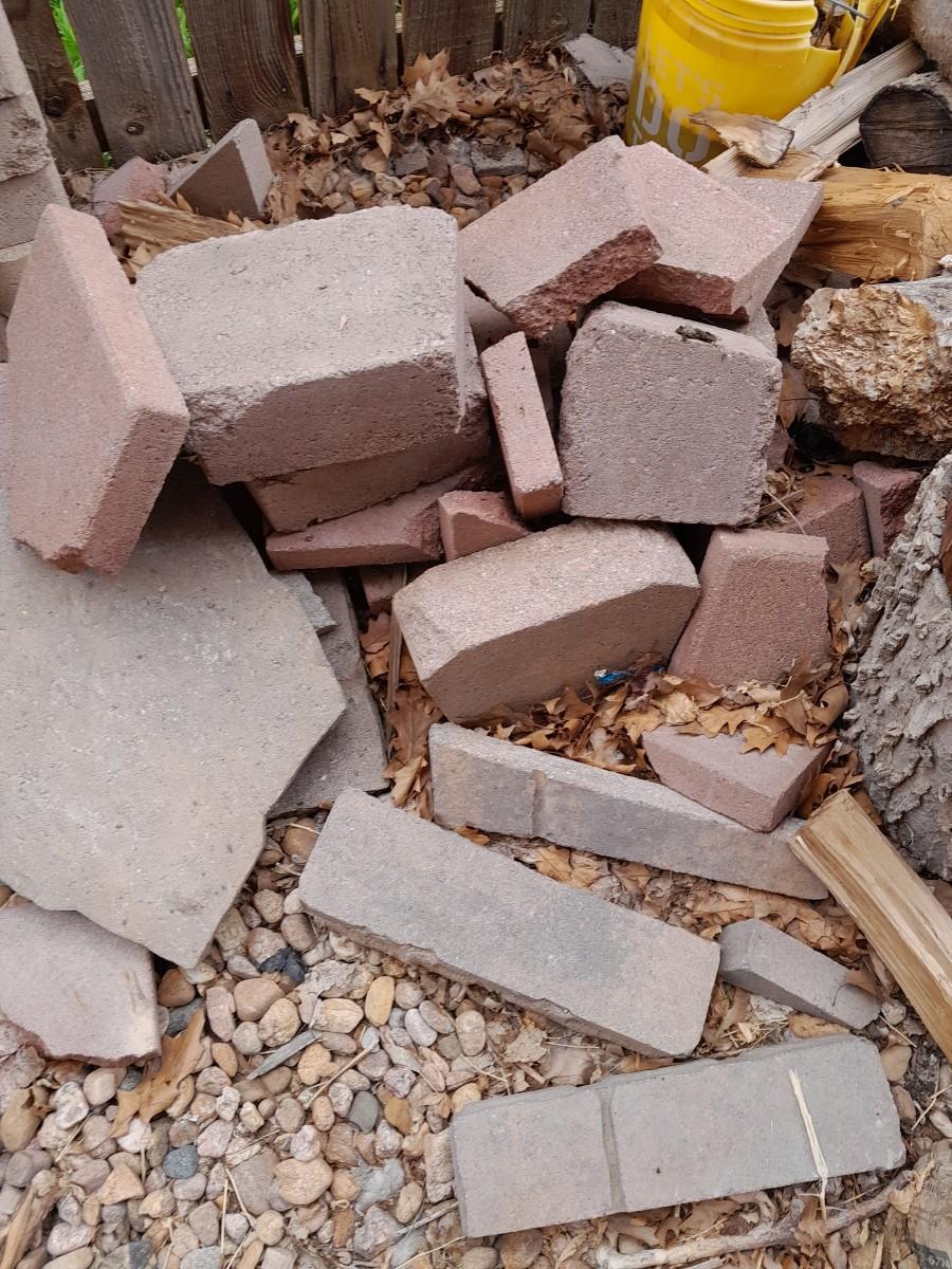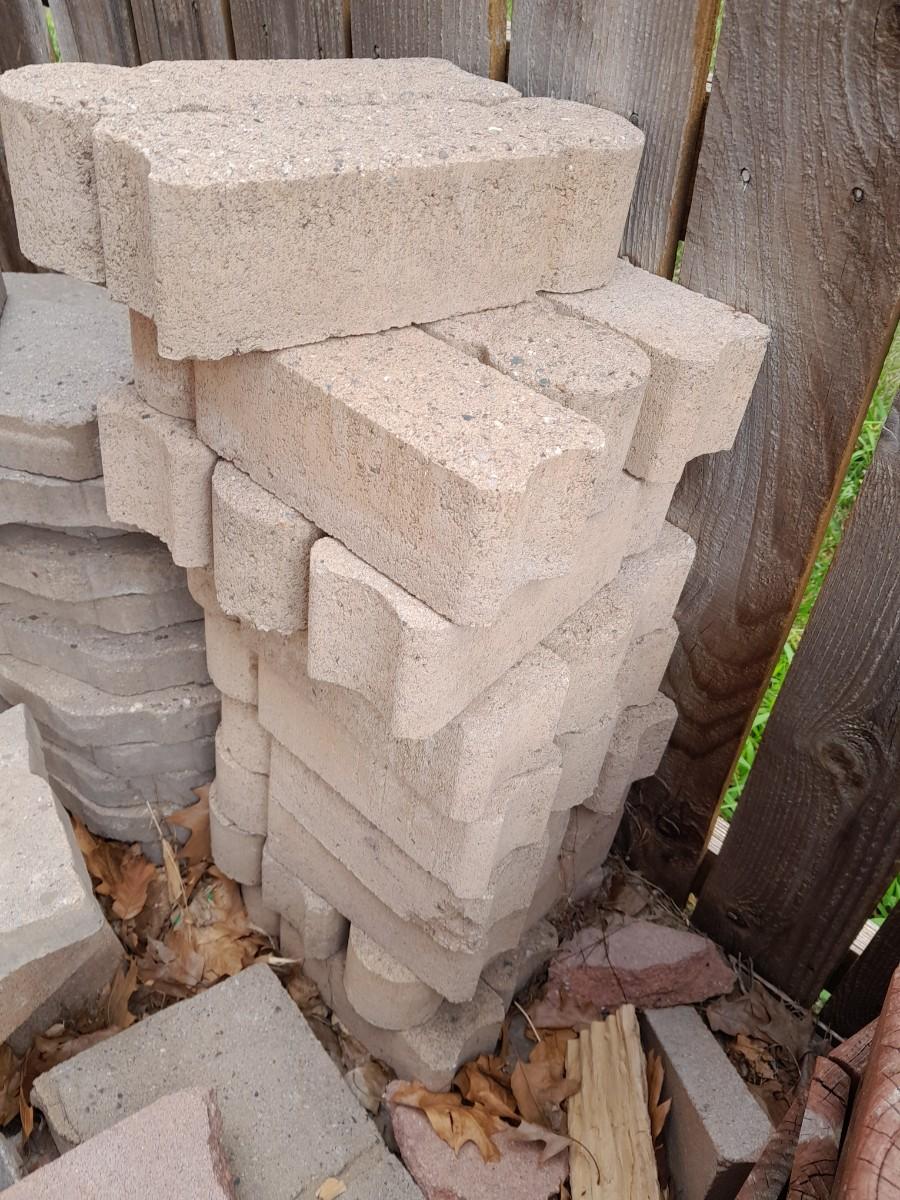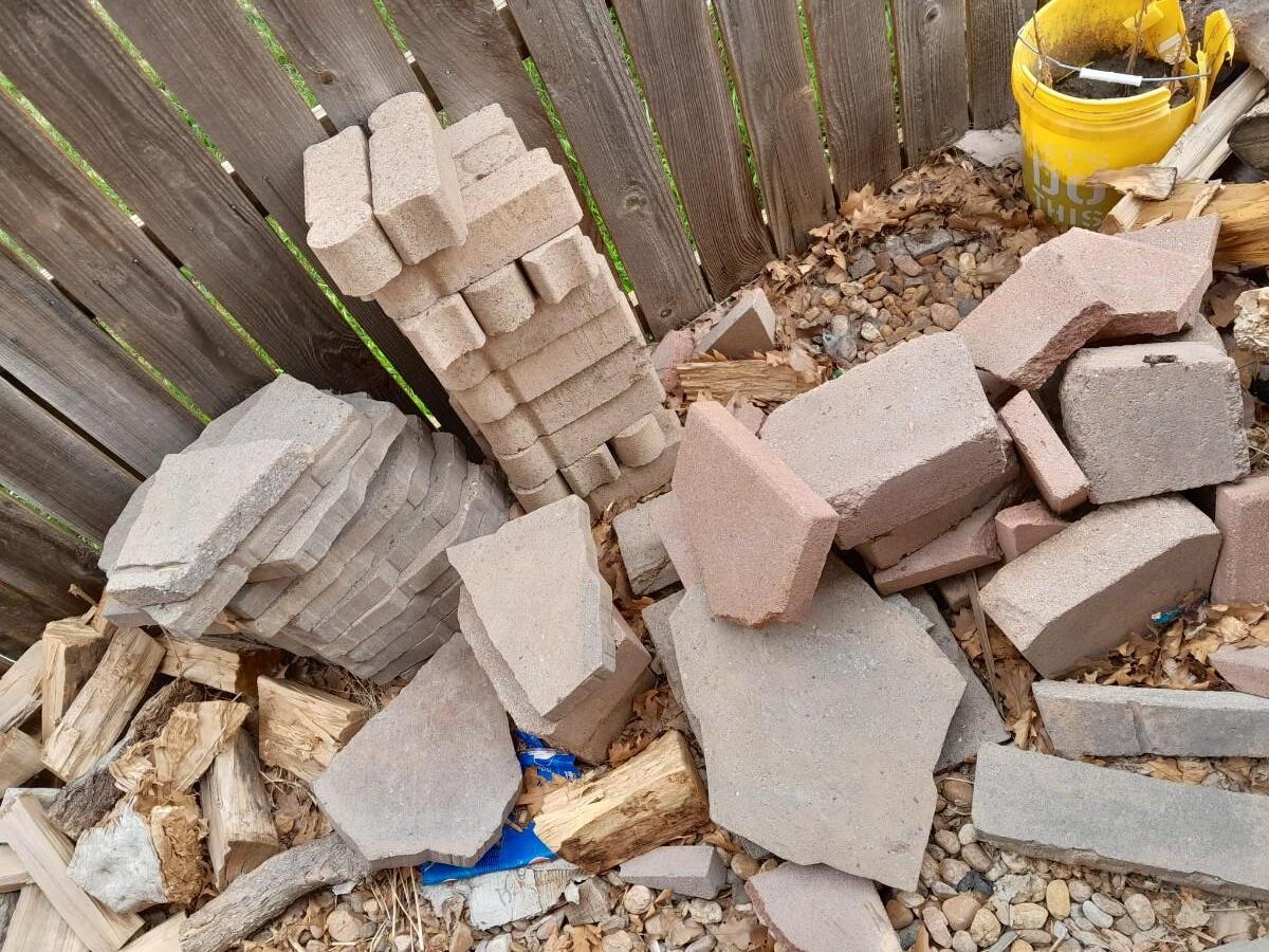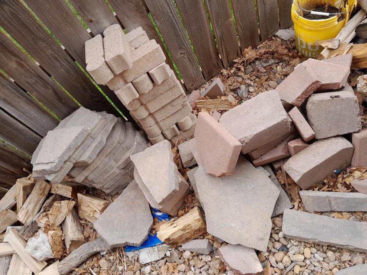 LARGE ASSORTMENT OF DOFFERENT SHAPED BRICKS AND PAVERS, SOME ARE BROKEN