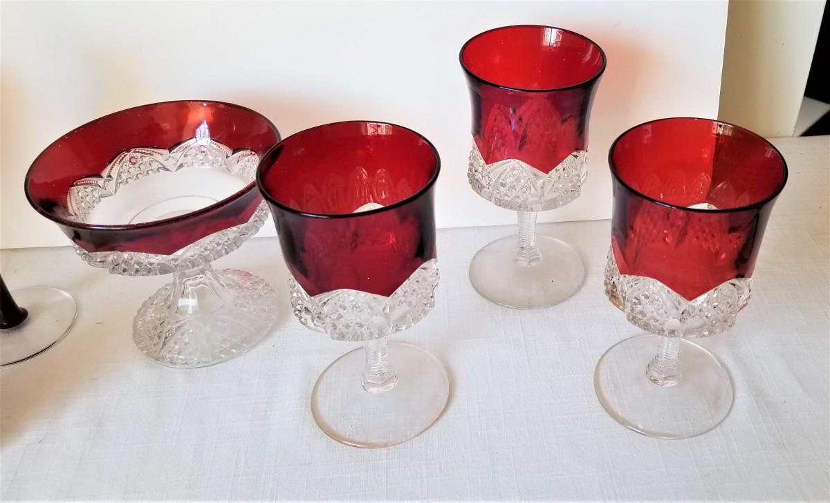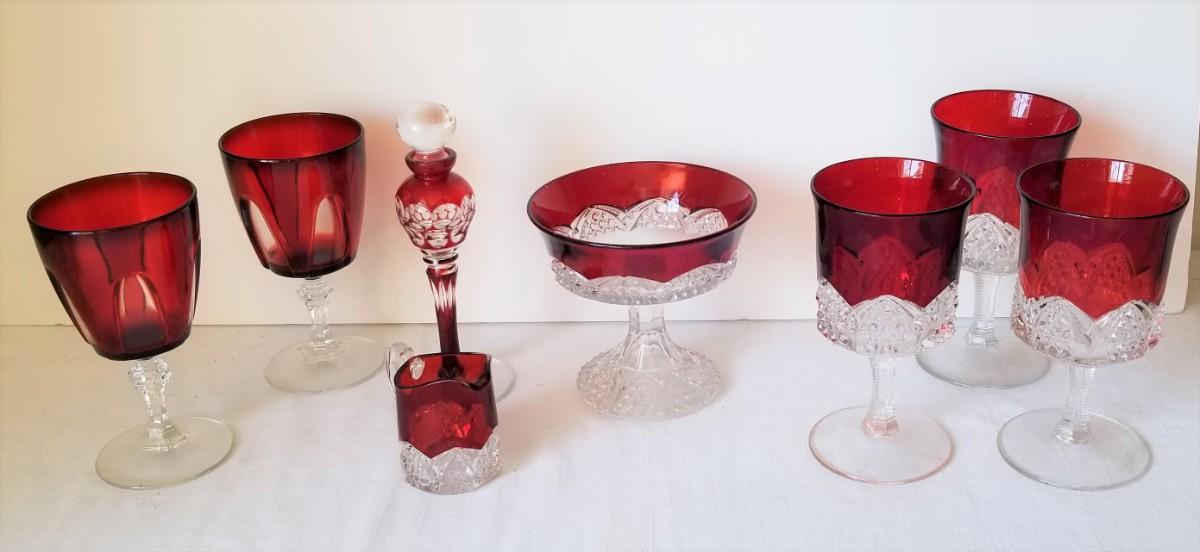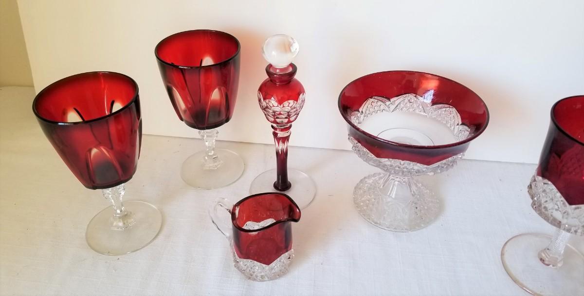 Lot #183  Lot of Vintage Ruby Flashed Glassware - 8 pieces