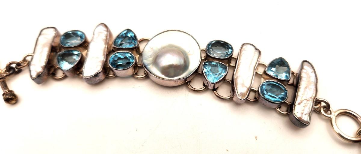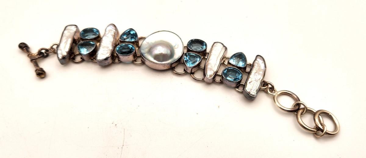 Lot #183 Lovely Charles Albert Sterling Silver, Blue Topaz and Mother of Pearl Bracelet