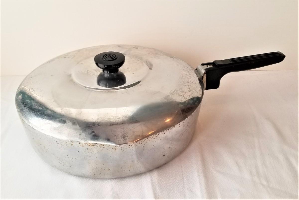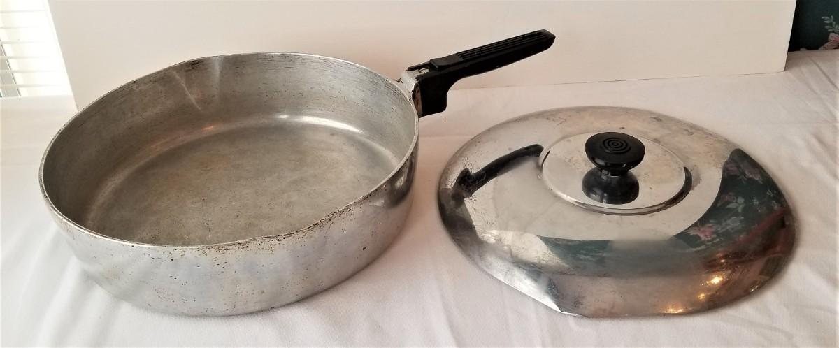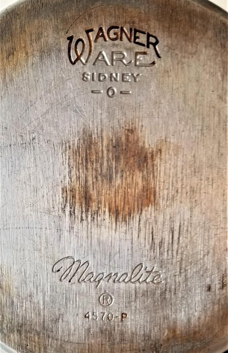 Magnalite/Wagner Ware heavy skillet - has been used - model 4570-P, 3" tall, 17.5" long including handle.