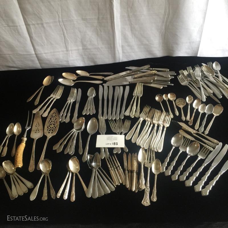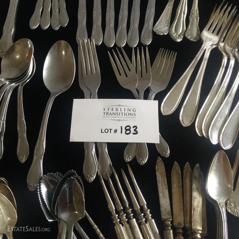 LOT 183 - MISC. Lot of Silverplate silverware   152 pieces