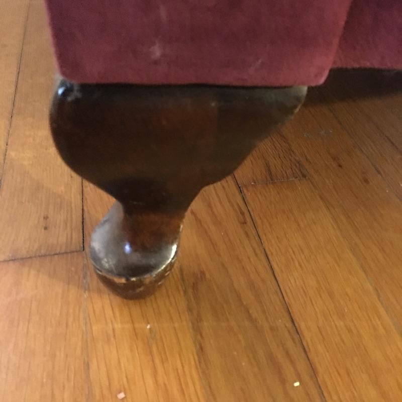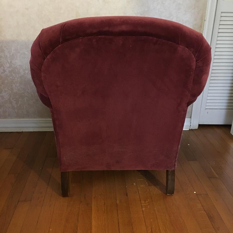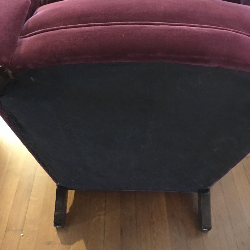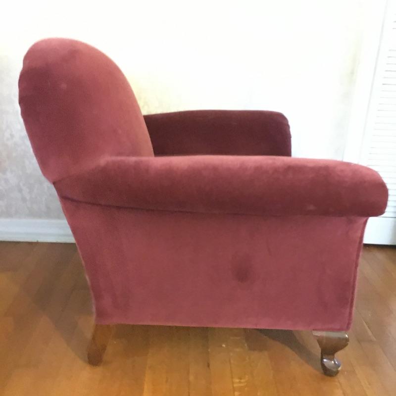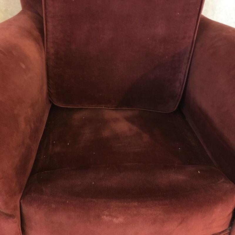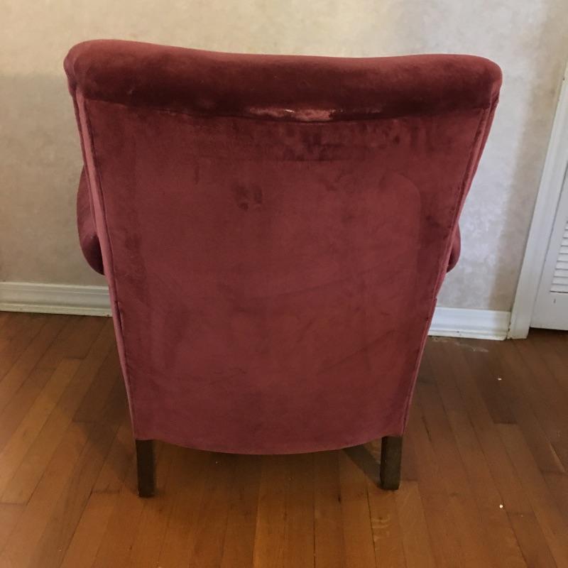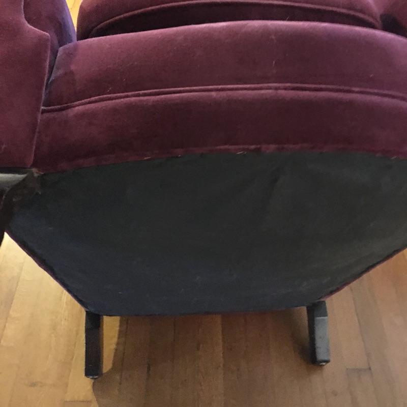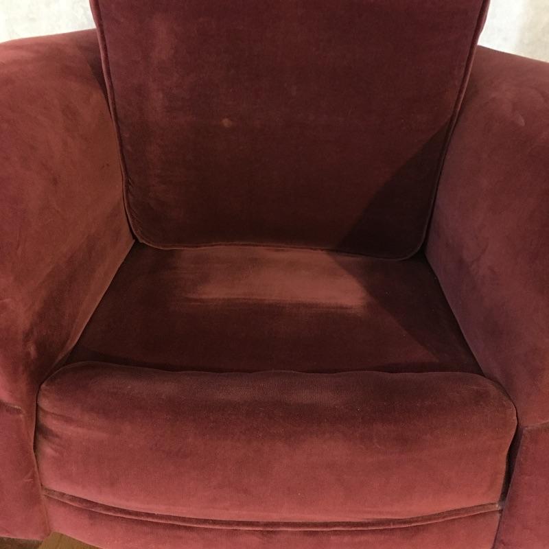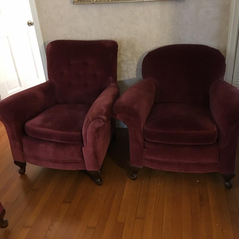 Pair of his and hers side chairs with wooden feet. Sit back and relax in this velvety smooth pair of chairs.
