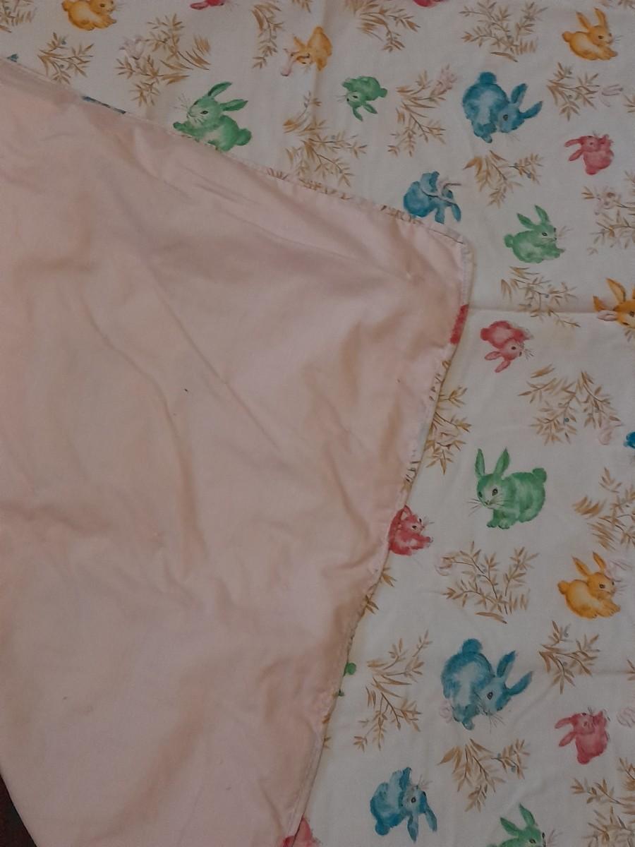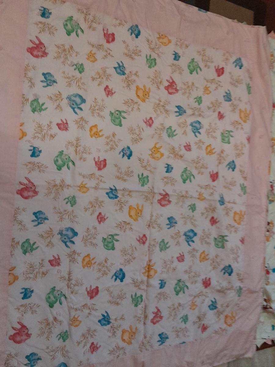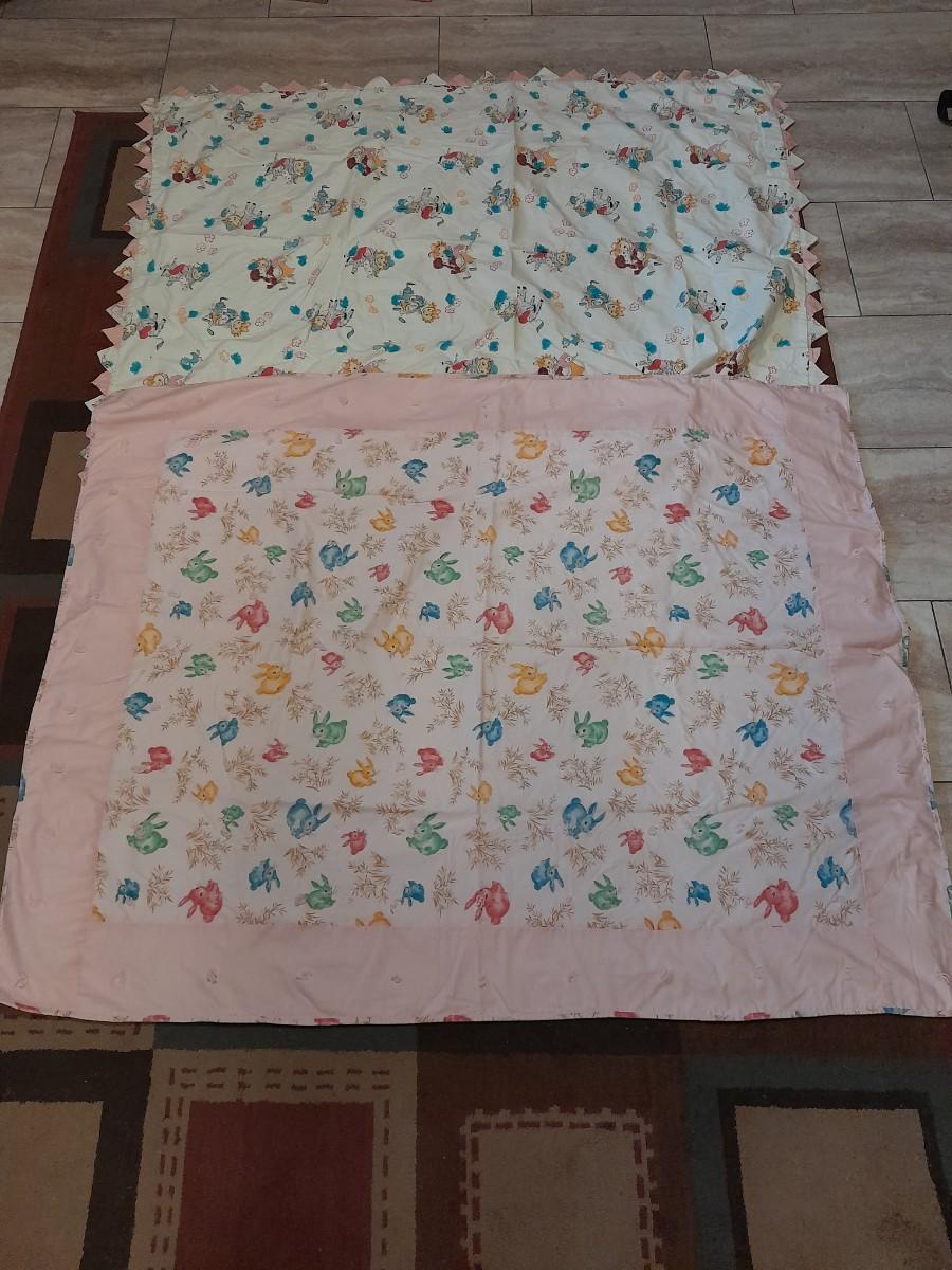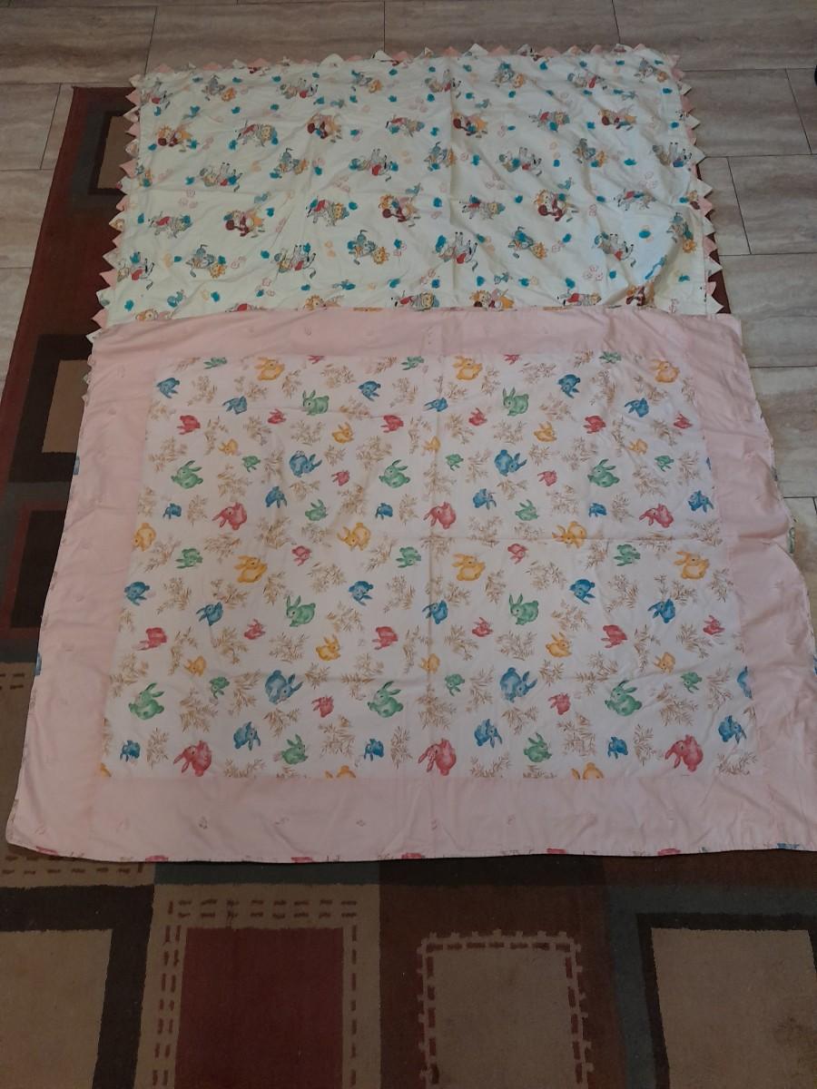 TWO HANDMADE BABY QUILTS, ONE WITH BUNNIES, 52" X 40" AND ONE WITH CHILDREN AND PUPPY, AND DONKEY'S 55" X 44"