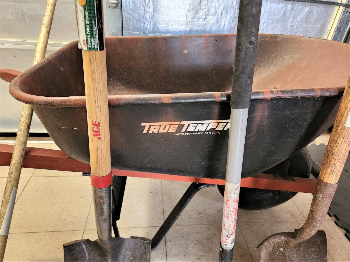 You get all you see here - good wheelbarrow, 3 yard rakes, 2 shovels.