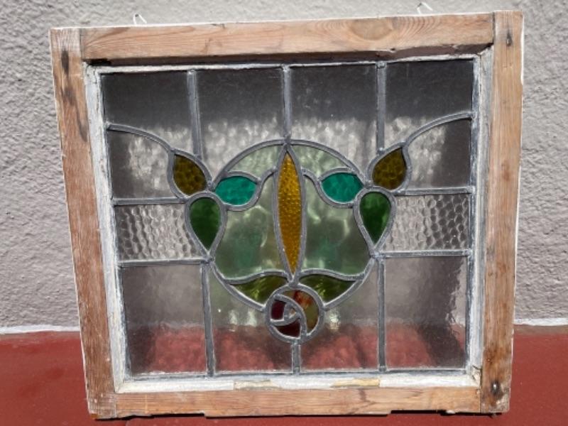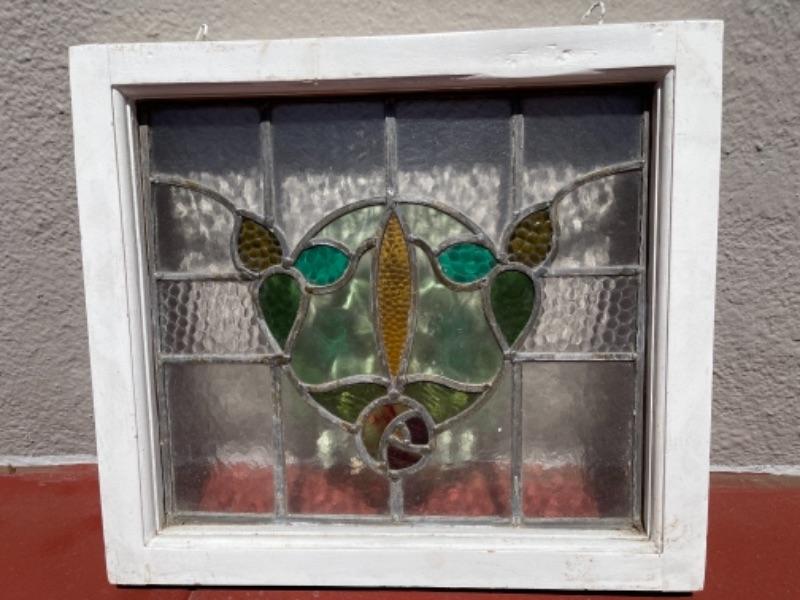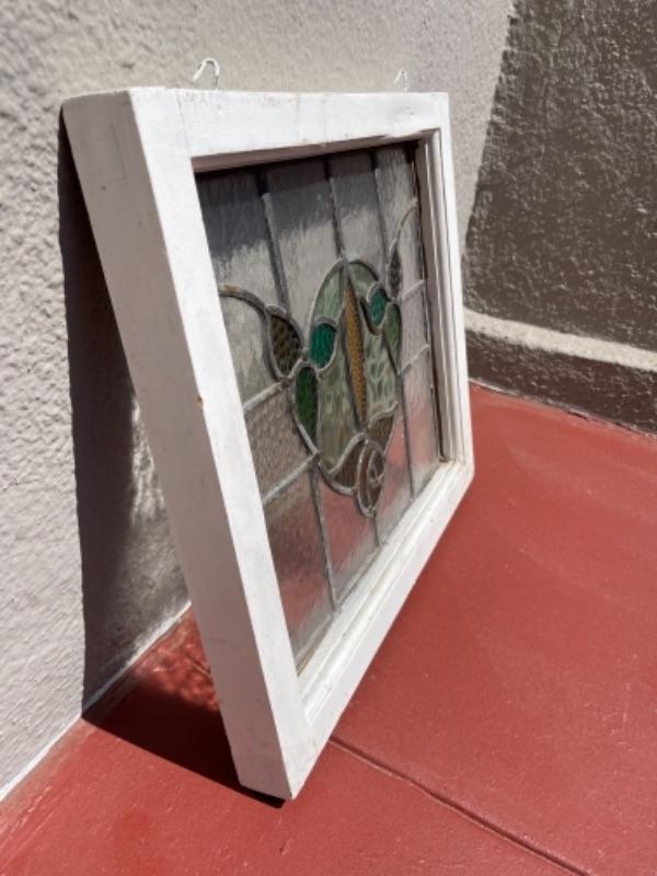 Lot 183G. Vintage framed stained glass window (20” x 17-1/2”)--$95