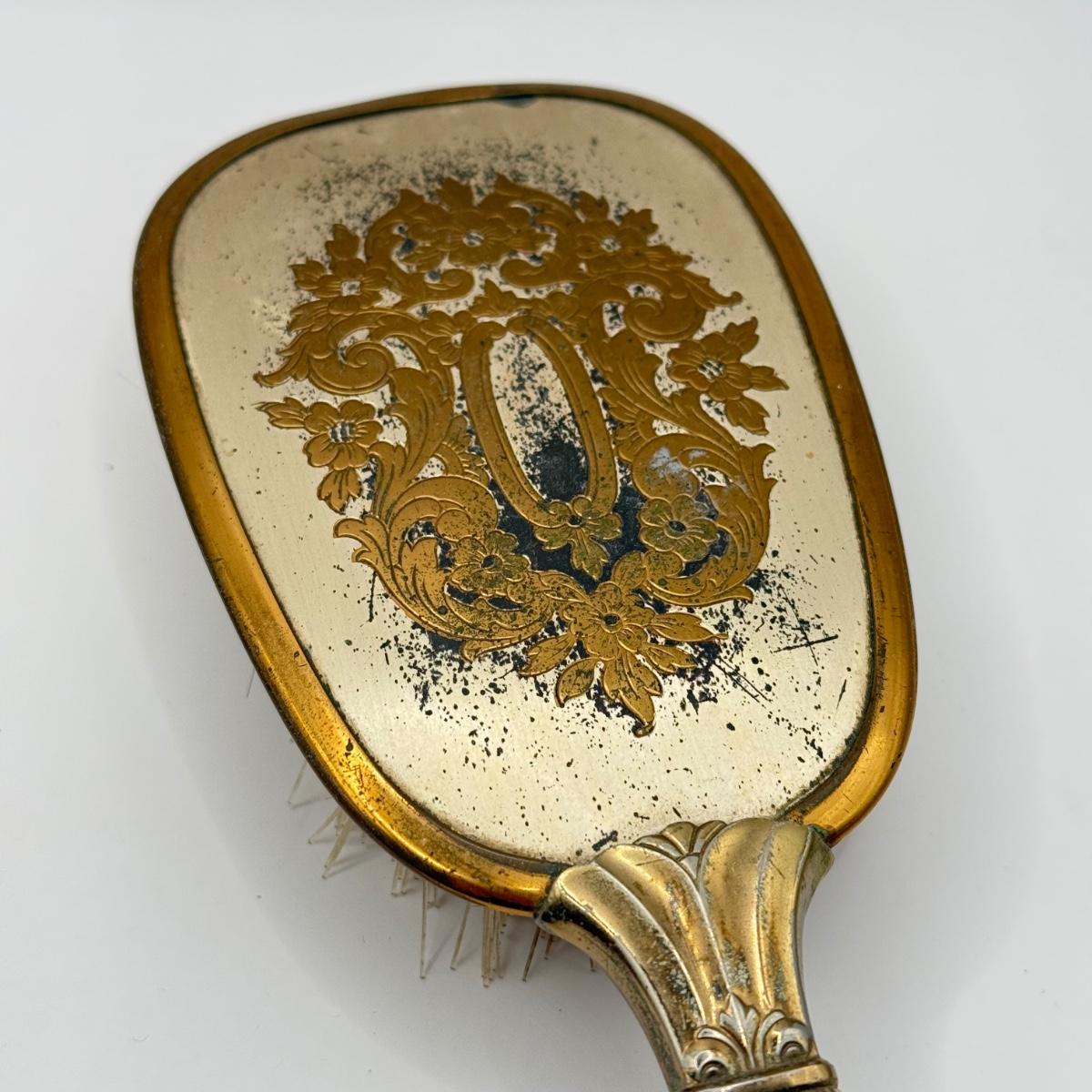 LOT 183J: Vintage Gold Tone Vanity Hand Mirror & Brush
