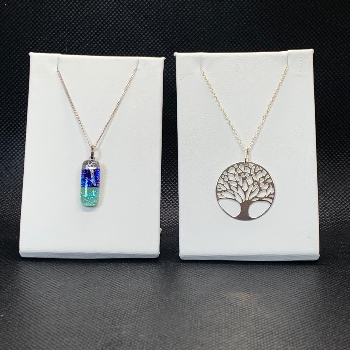 Lot 184: JMC Sterling Silver Tree of Life Pendant Necklace 18" & Glass Pendant w/Sterling Silver Chain 16"