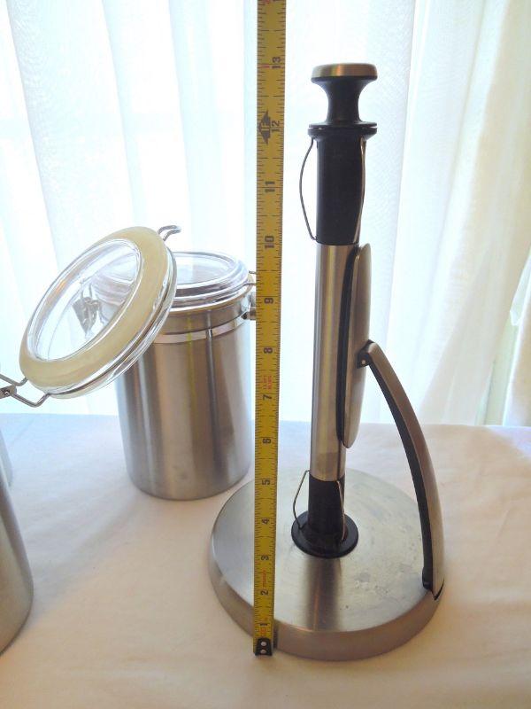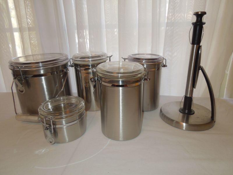 Lot 184: 5 Stainless Canisters and Stainless Towel Dispenser