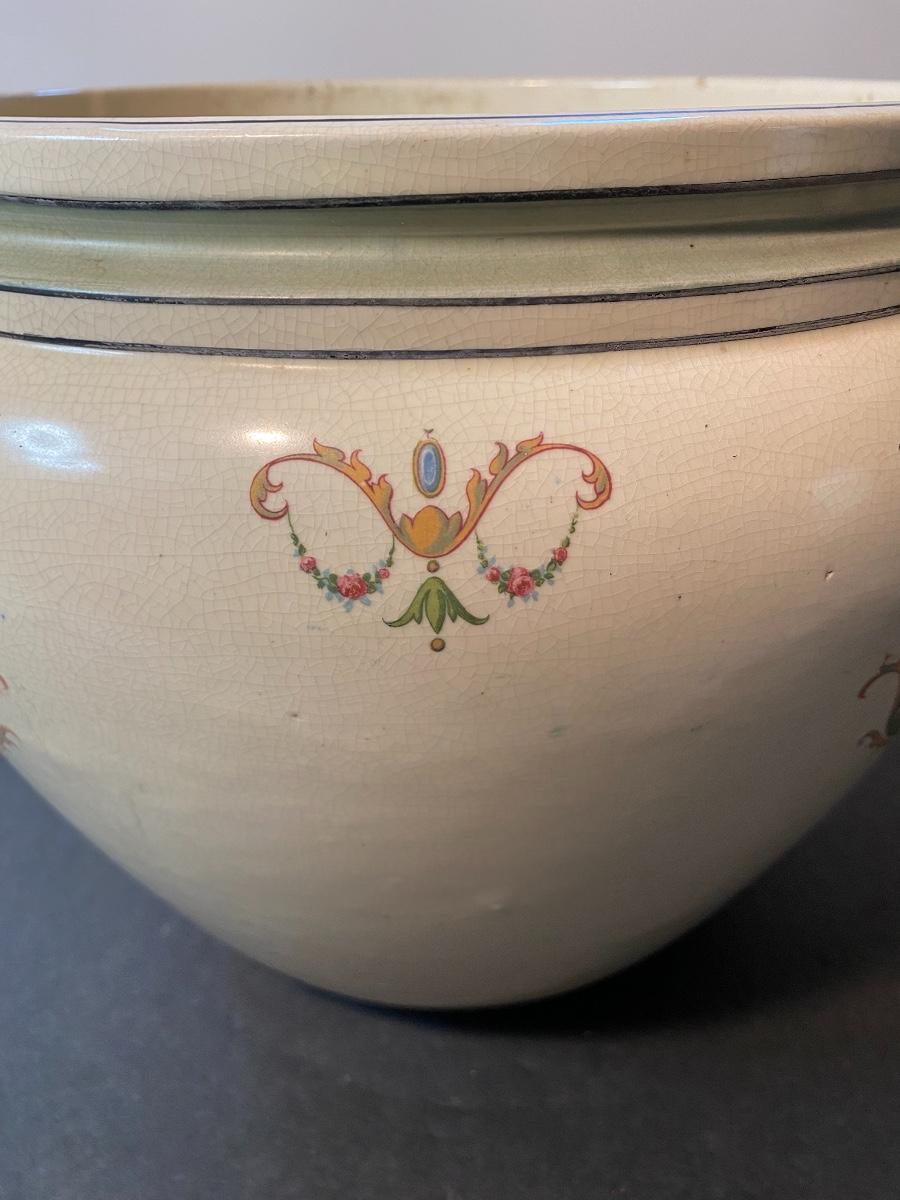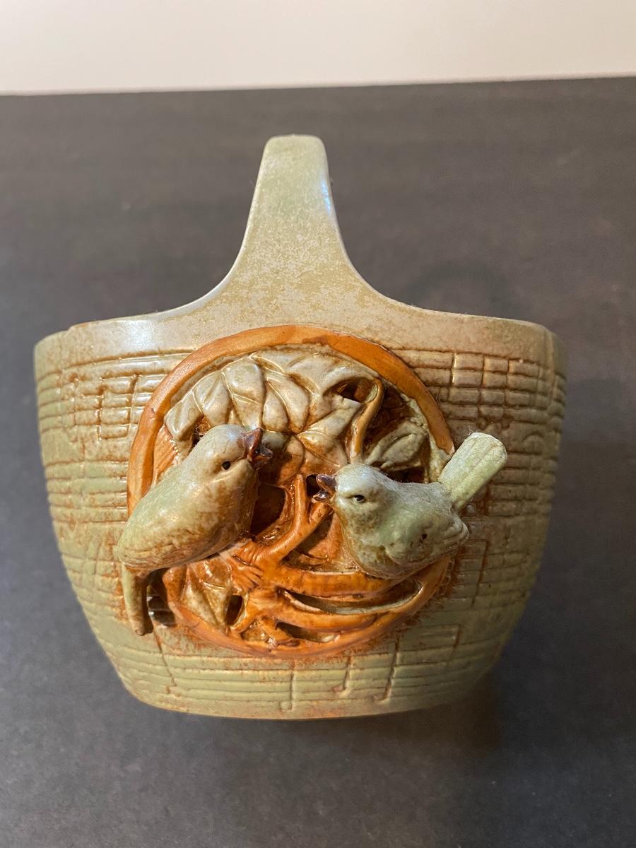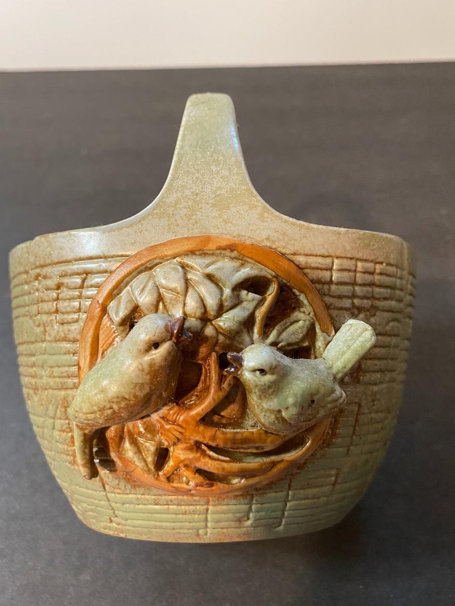 Beautiful large jardiniere/planter, modern pottery basket with birds, and bird wall pocket. Please see pictures as they are the best representation of the item, the condition of the item, and the size of the item.