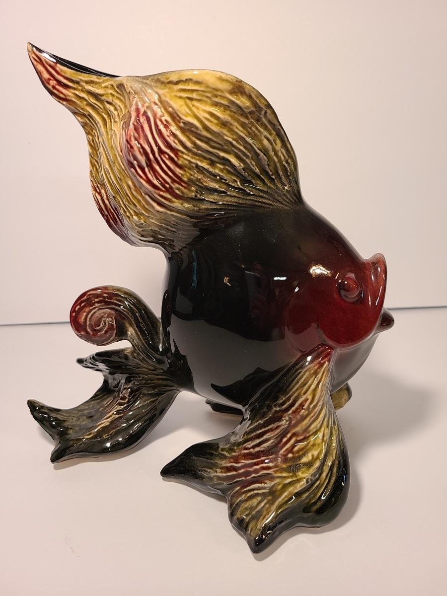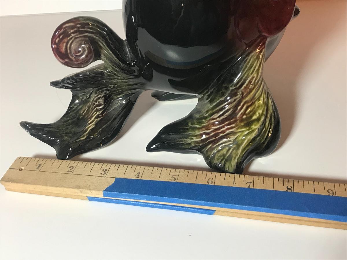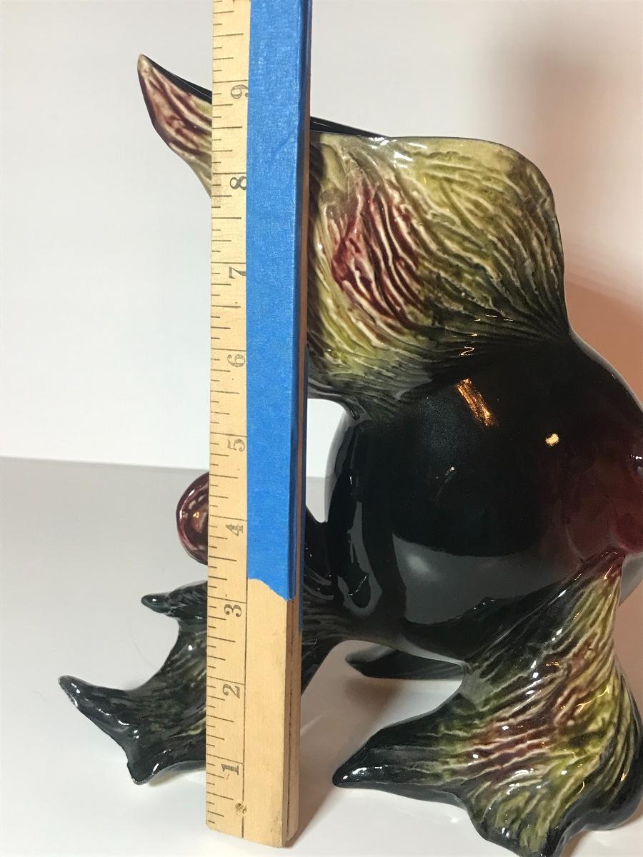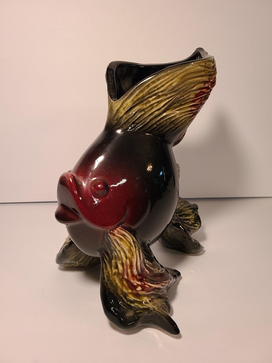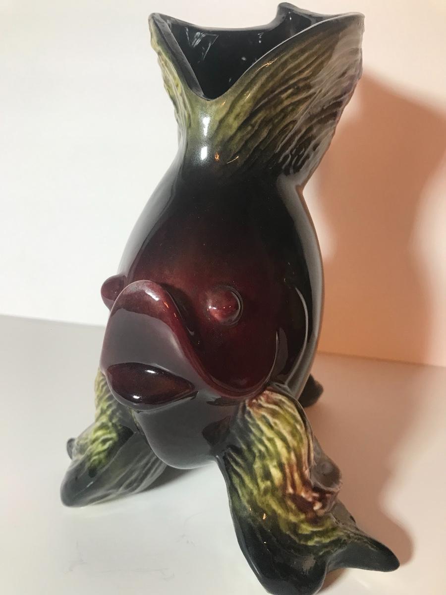 This piece is larger than it appears in pictures and is gorgeous! The fanning fins look like they are in motion. This can be used as a vase or planter, but is stunning on its own as a display piece. Marked Hull USA E-6. The is a hard piece to find in this amazing condition. No chips or cracks noted. Please see all pictures as they are the best representation of the items. The pictures show condition, measurements if taken, and what is included in the lot. Due to the large amount that we photograph and the time frame, we are not always able to take measurements. All items unless noted, are pre-owned and have been used. If you purchased furniture, you must bring help. We do not allow one person to carry large furniture out on their own. Bring help, tools and a truck for the safety of our client’s homes, and your personal safety. Company policy. Thank you.