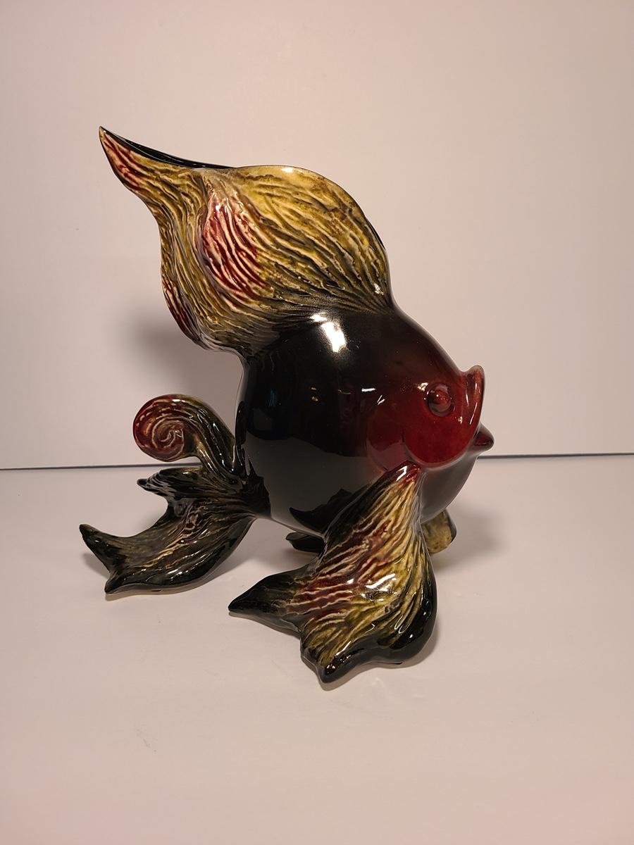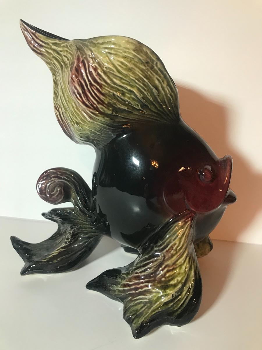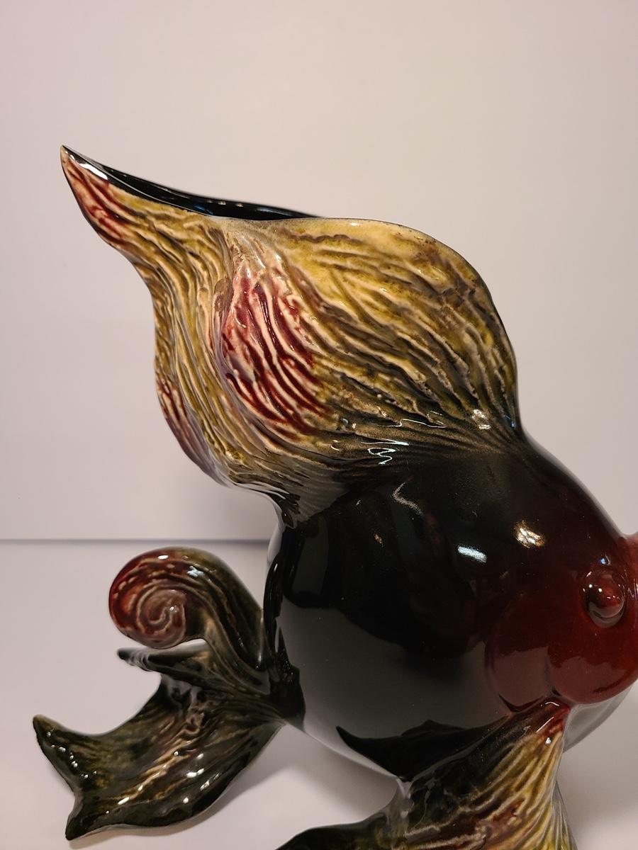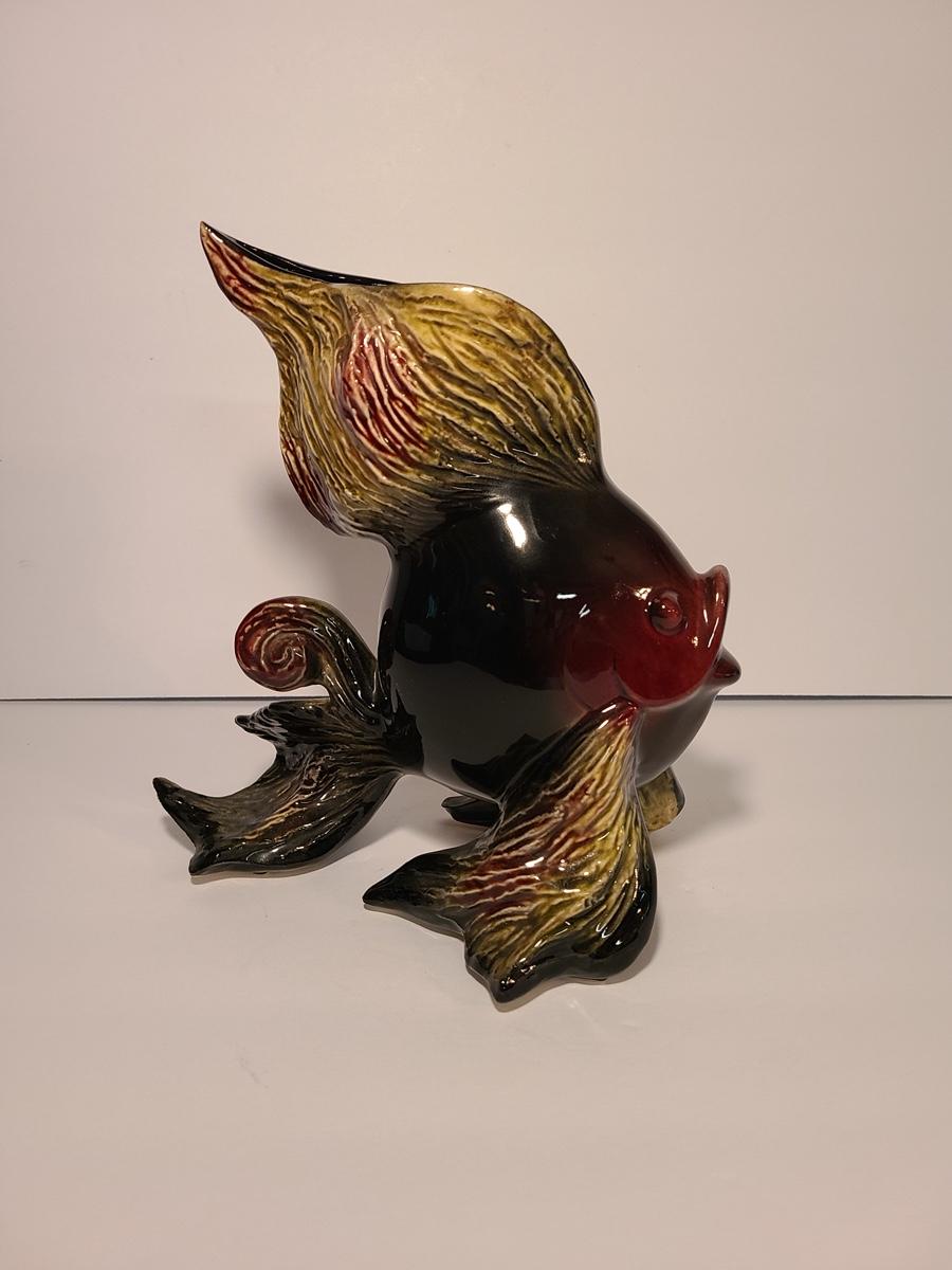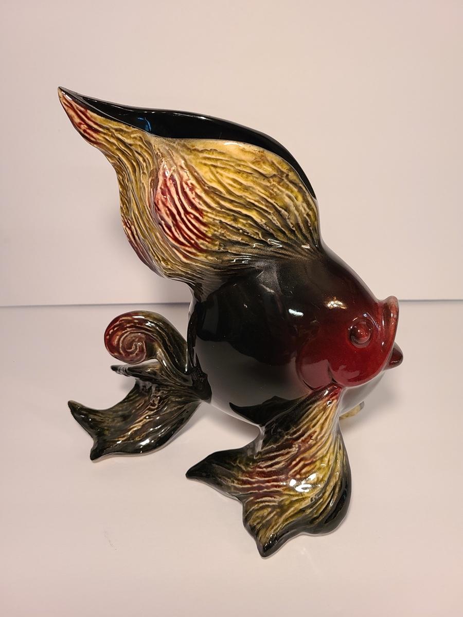 This piece is larger than it appears in pictures and is gorgeous! The fanning fins look like they are in motion. This can be used as a vase or planter, but is stunning on its own as a display piece. Marked Hull USA E-6. The is a hard piece to find in this amazing condition. No chips or cracks noted. Please see all pictures as they are the best representation of the items. The pictures show condition, measurements if taken, and what is included in the lot. Due to the large amount that we photograph and the time frame, we are not always able to take measurements. All items unless noted, are pre-owned and have been used. If you purchased furniture, you must bring help. We do not allow one person to carry large furniture out on their own. Bring help, tools and a truck for the safety of our client’s homes, and your personal safety. Company policy. Thank you.