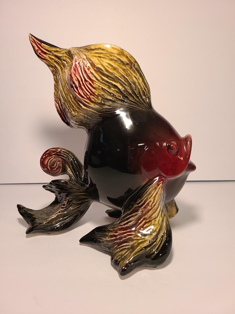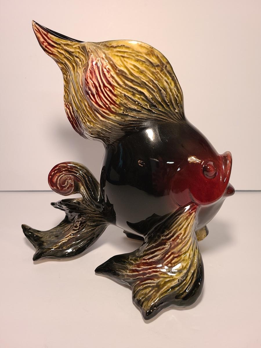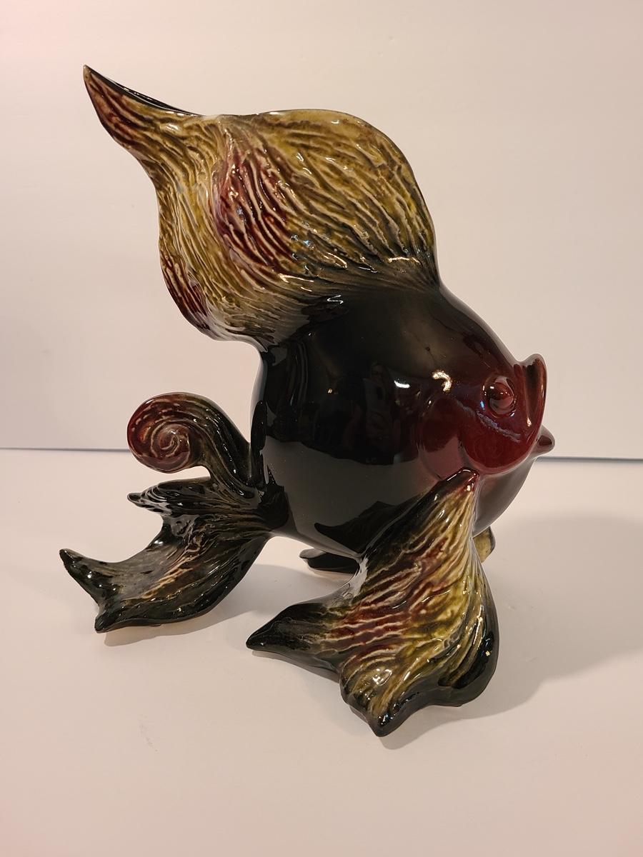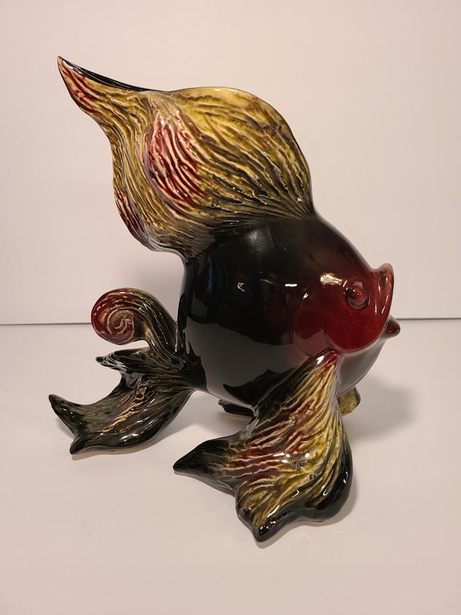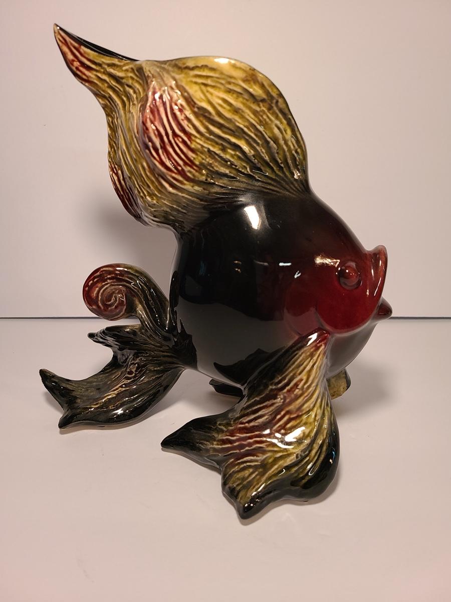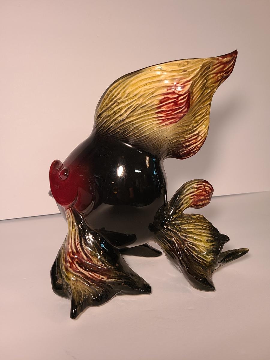 This piece is larger than it appears in pictures and is gorgeous! The fanning fins look like they are in motion. This can be used as a vase or planter, but is stunning on its own as a display piece. Marked Hull USA E-6. The is a hard piece to find in this amazing condition. No chips or cracks noted. Please see all pictures as they are the best representation of the items. The pictures show condition, measurements if taken, and what is included in the lot. Due to the large amount that we photograph and the time frame, we are not always able to take measurements. All items unless noted, are pre-owned and have been used. If you purchased furniture, you must bring help. We do not allow one person to carry large furniture out on their own. Bring help, tools and a truck for the safety of our client’s homes, and your personal safety. Company policy. Thank you.