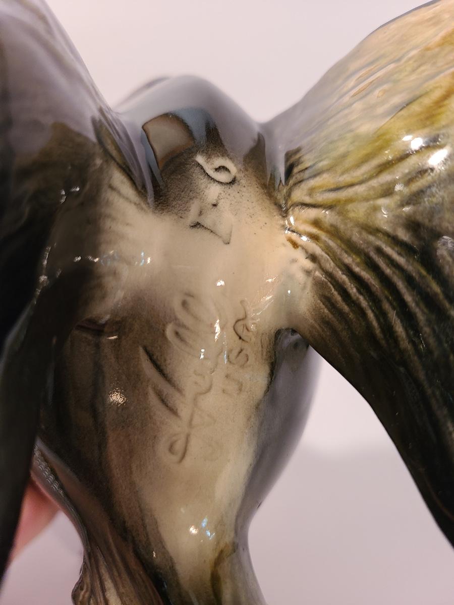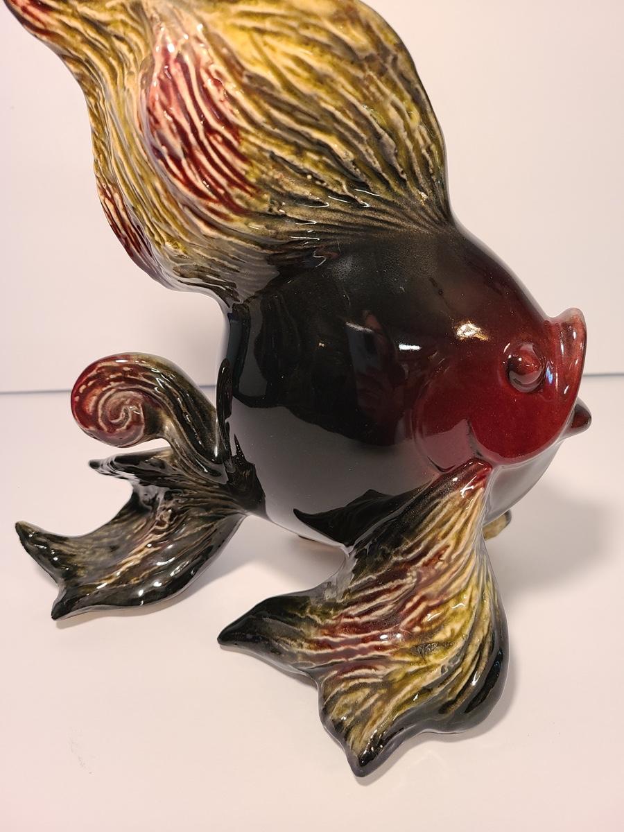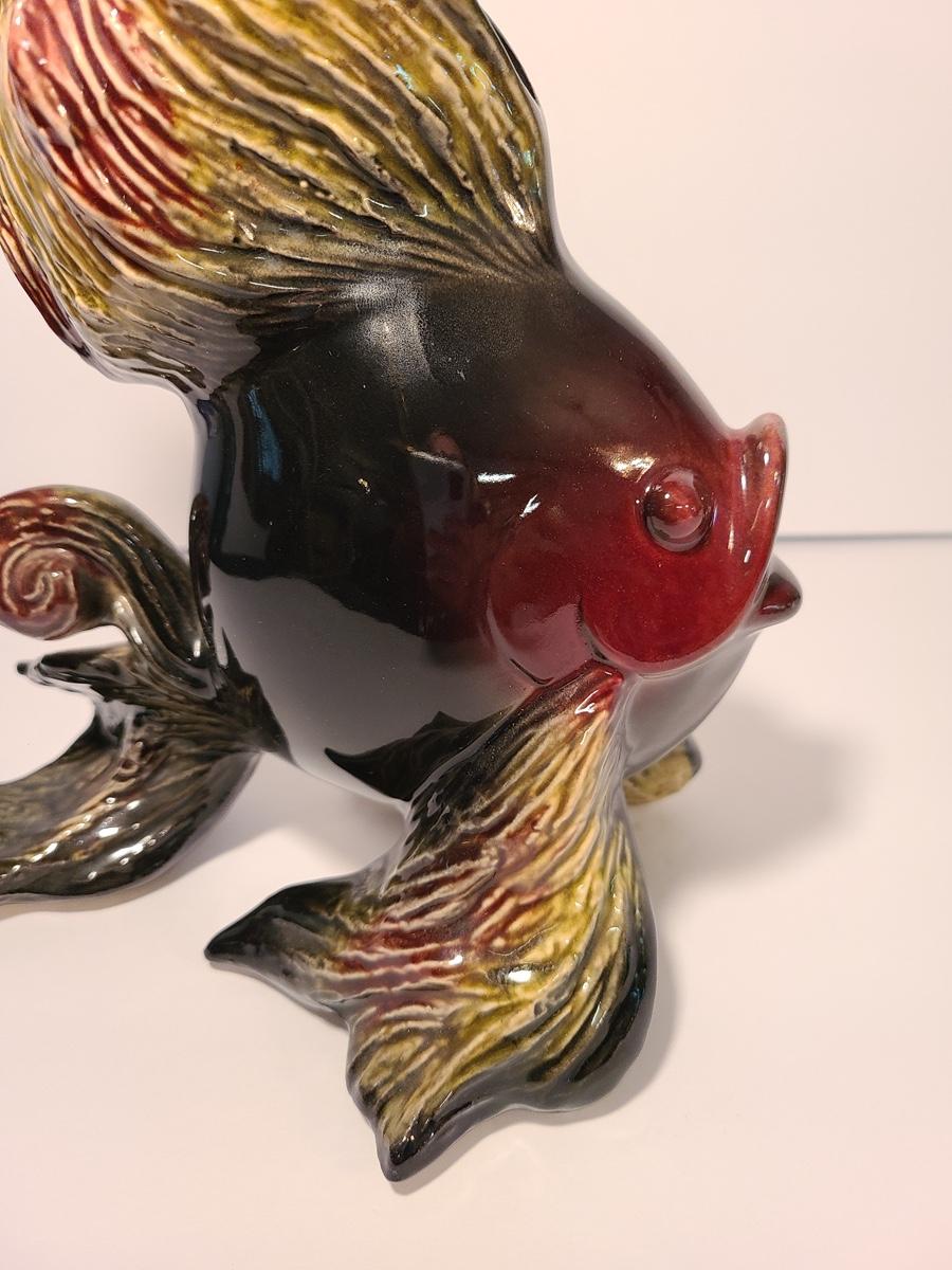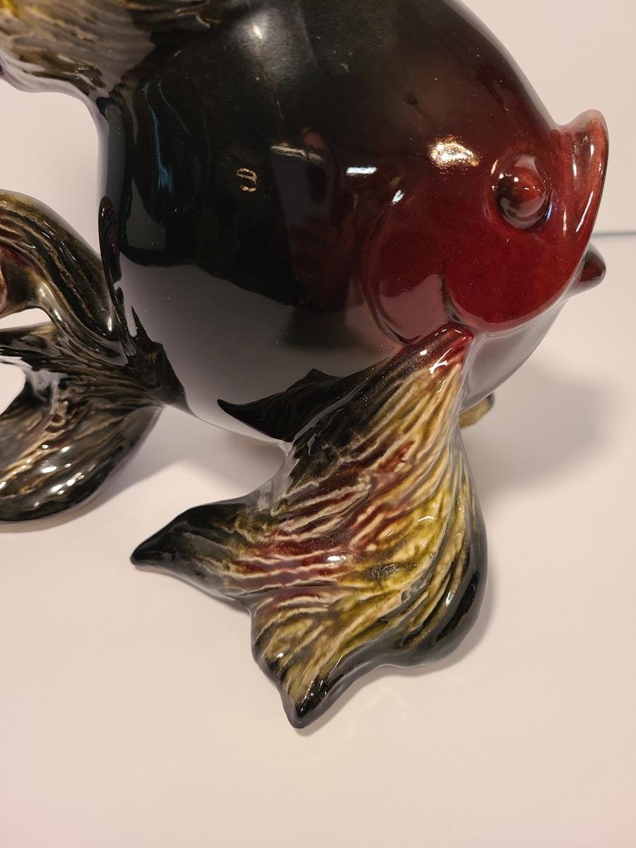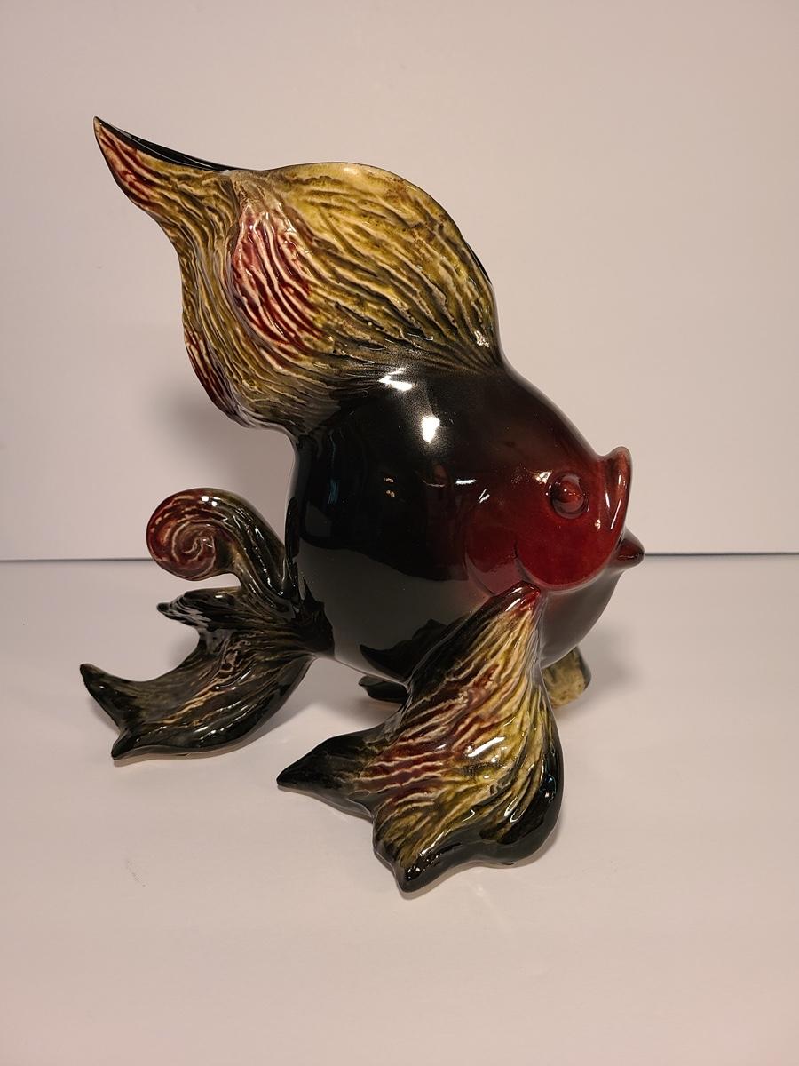 This piece is larger than it appears in pictures and is gorgeous! The fanning fins look like they are in motion. This can be used as a vase or planter, but is stunning on its own as a display piece. Marked Hull USA E-6. The is a hard piece to find in this amazing condition. No chips or cracks noted. Please see all pictures as they are the best representation of the items. The pictures show condition, measurements if taken, and what is included in the lot. Due to the large amount that we photograph and the time frame, we are not always able to take measurements. All items unless noted, are pre-owned and have been used. If you purchased furniture, you must bring help. We do not allow one person to carry large furniture out on their own. Bring help, tools and a truck for the safety of our client’s homes, and your personal safety. Company policy. Thank you.