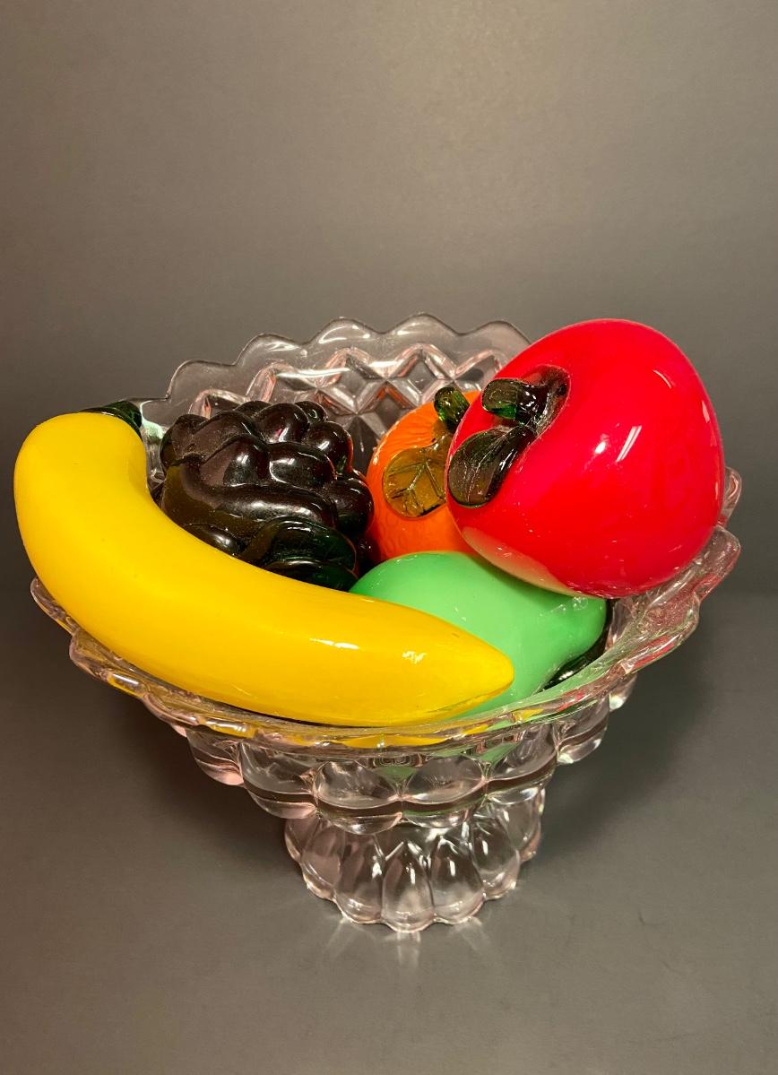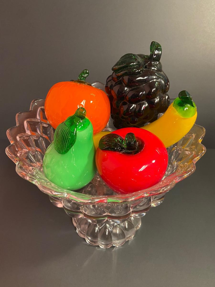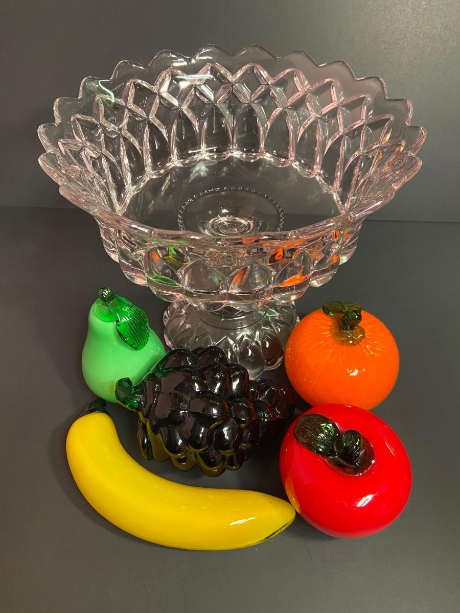 Lot 184: Blown Art Glass Fruit and Crystal Bowl
