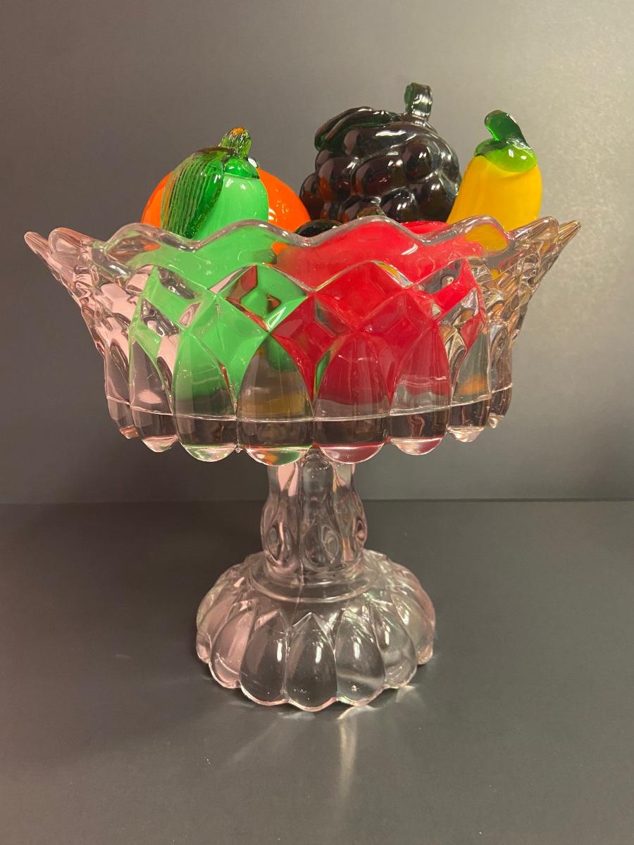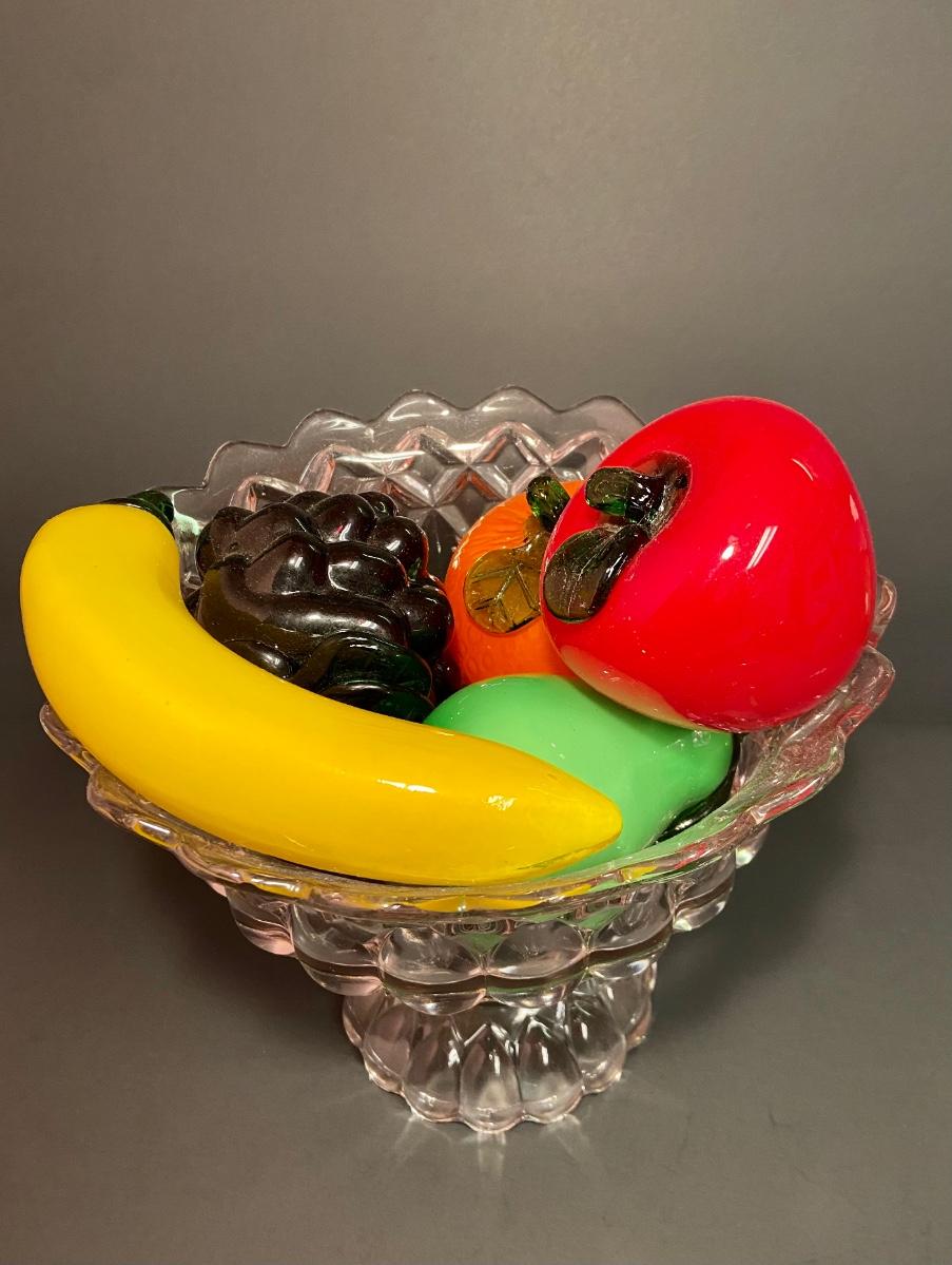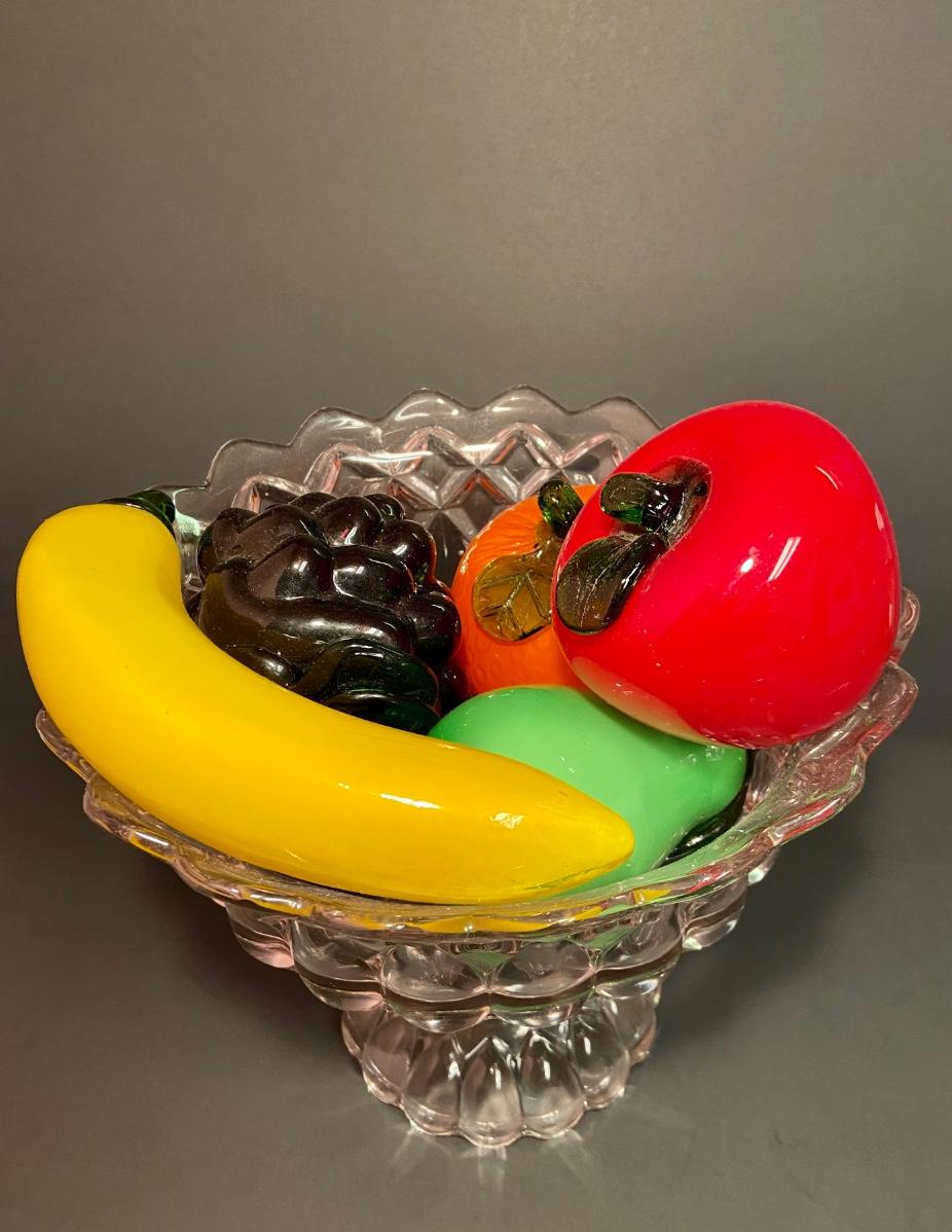 Lot 184: Blown Art Glass Fruit and Crystal Bowl
