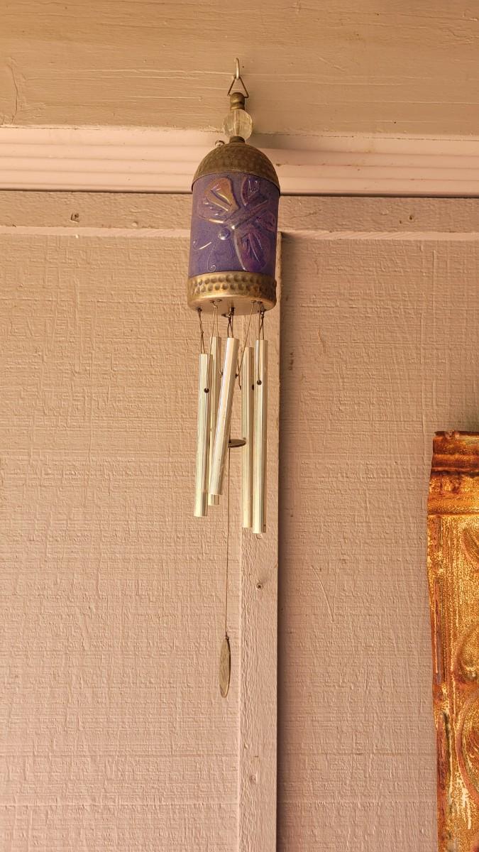 Lot 184: Vintage Blue Glass and Metal Wind Chime