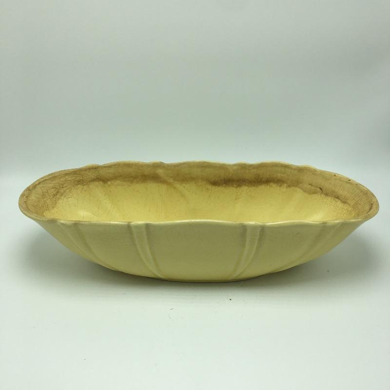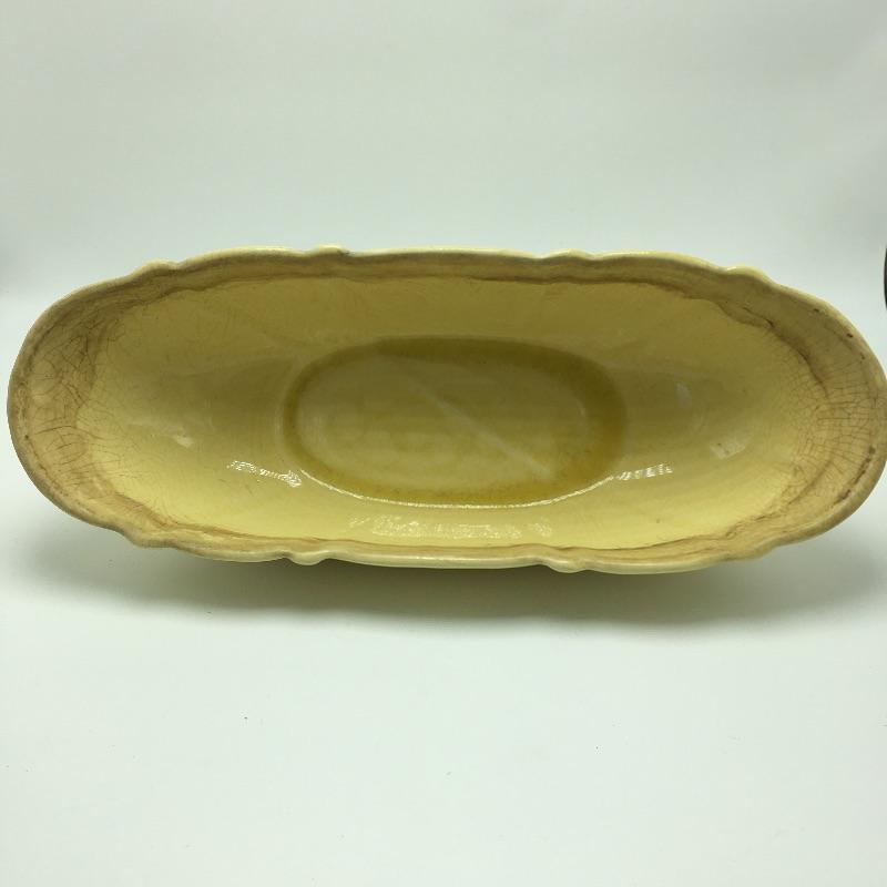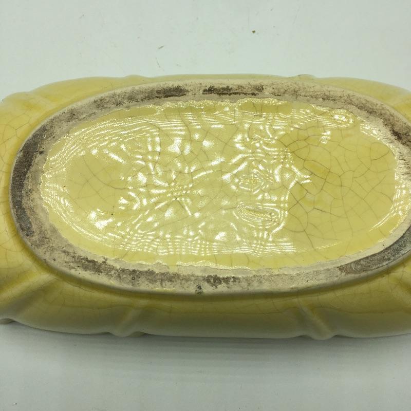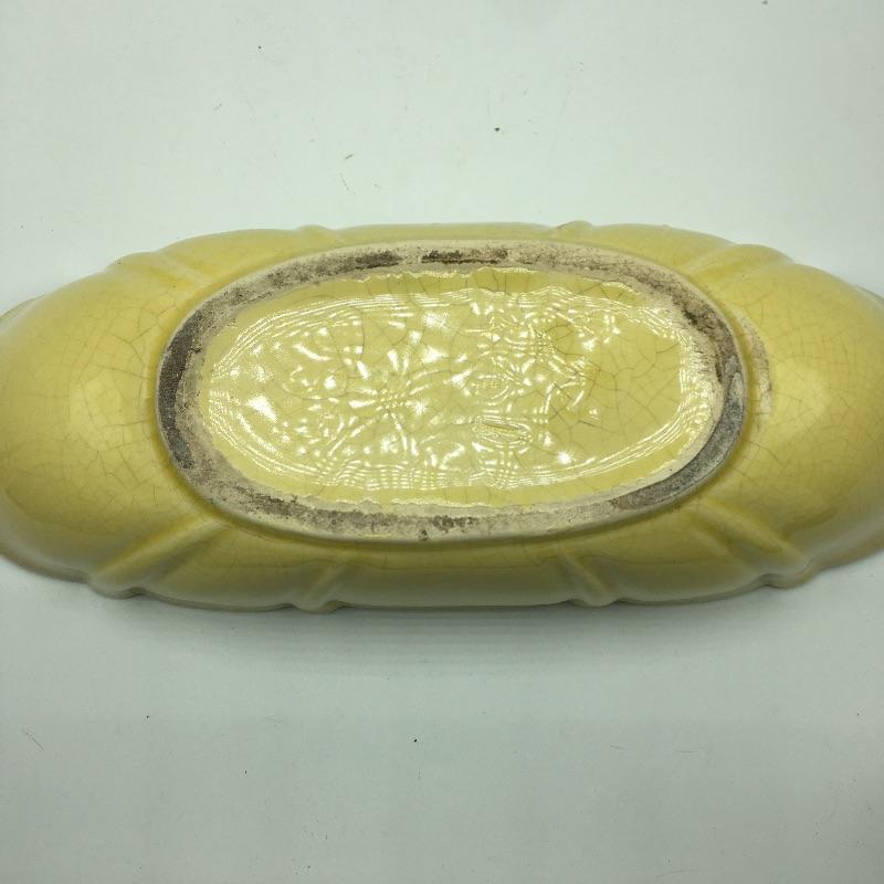 Yellow tray measures 5” x 14” x 3.5” and has some crazing.