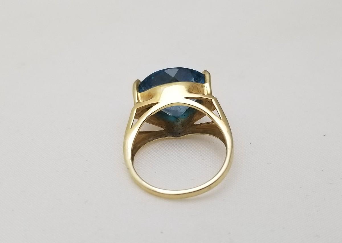 Gorgeous, highly faceted London Blue Topaz set in a contemporary 14kt yellow gold setting. Size 6.