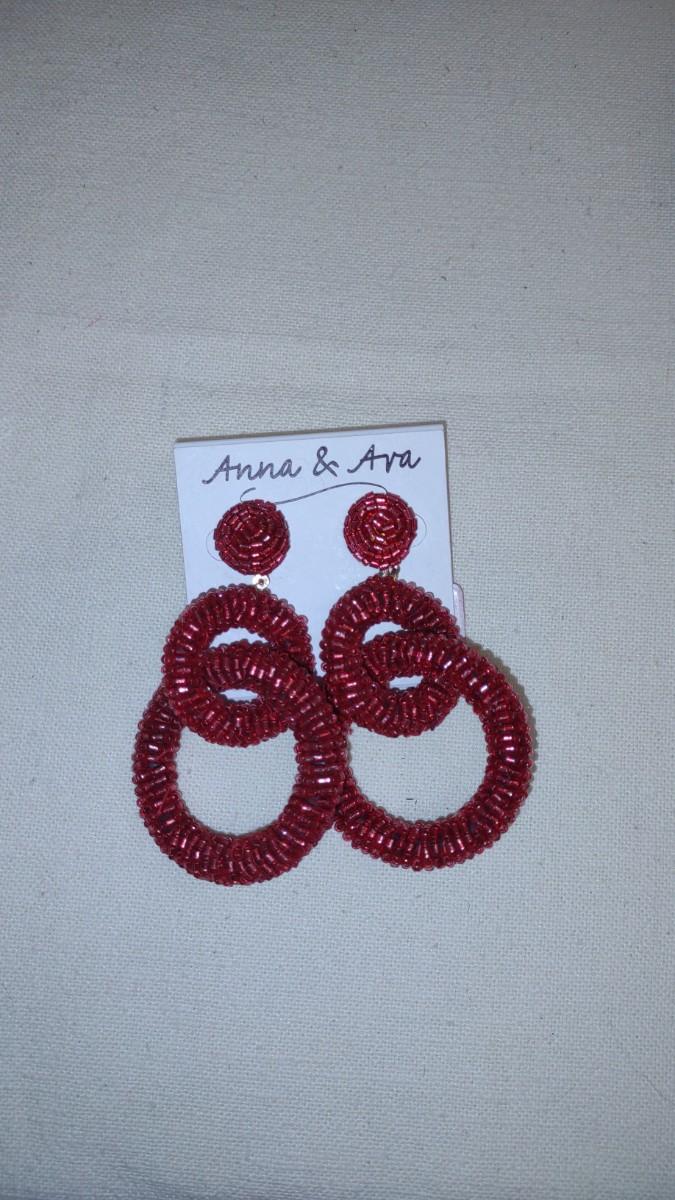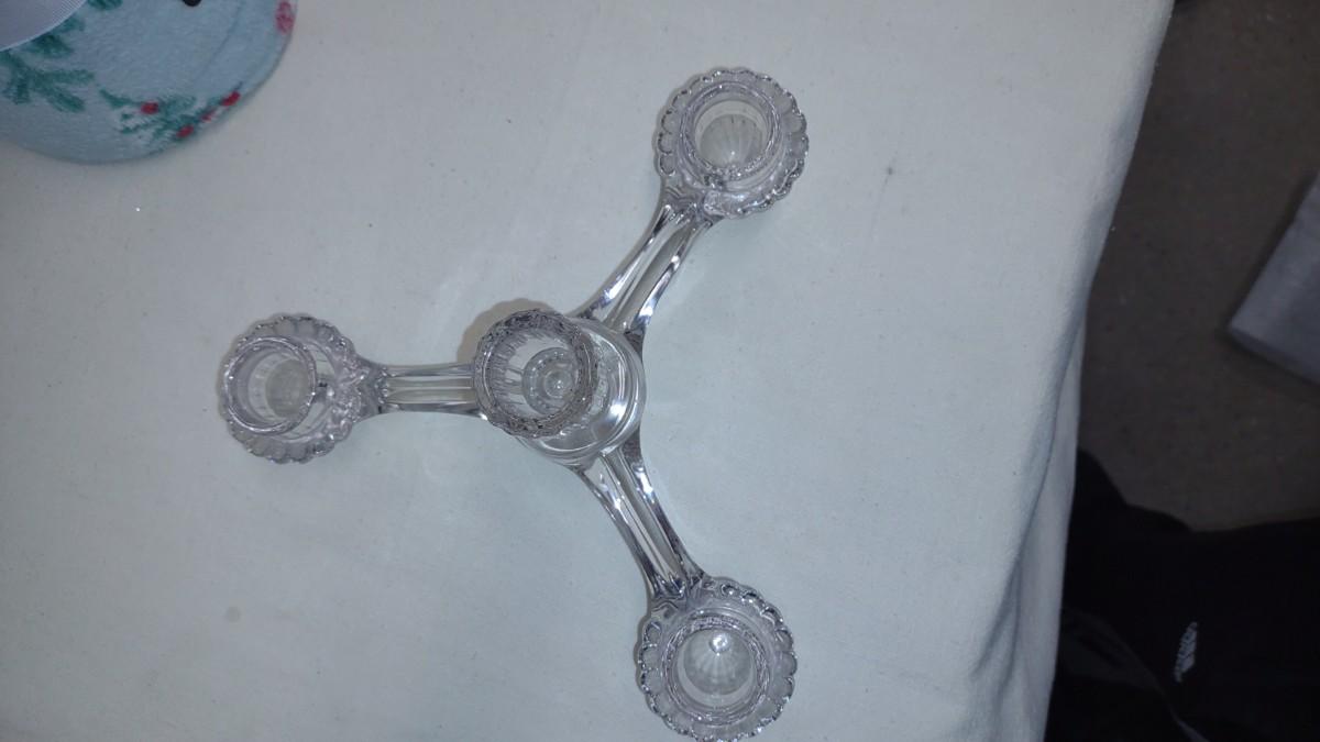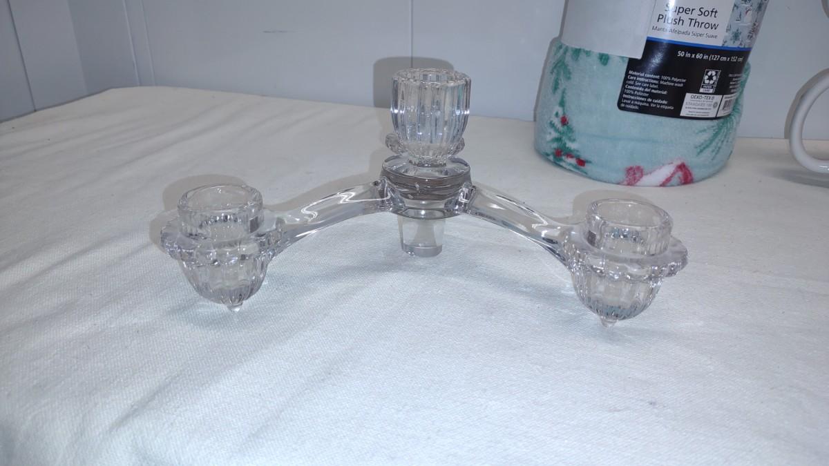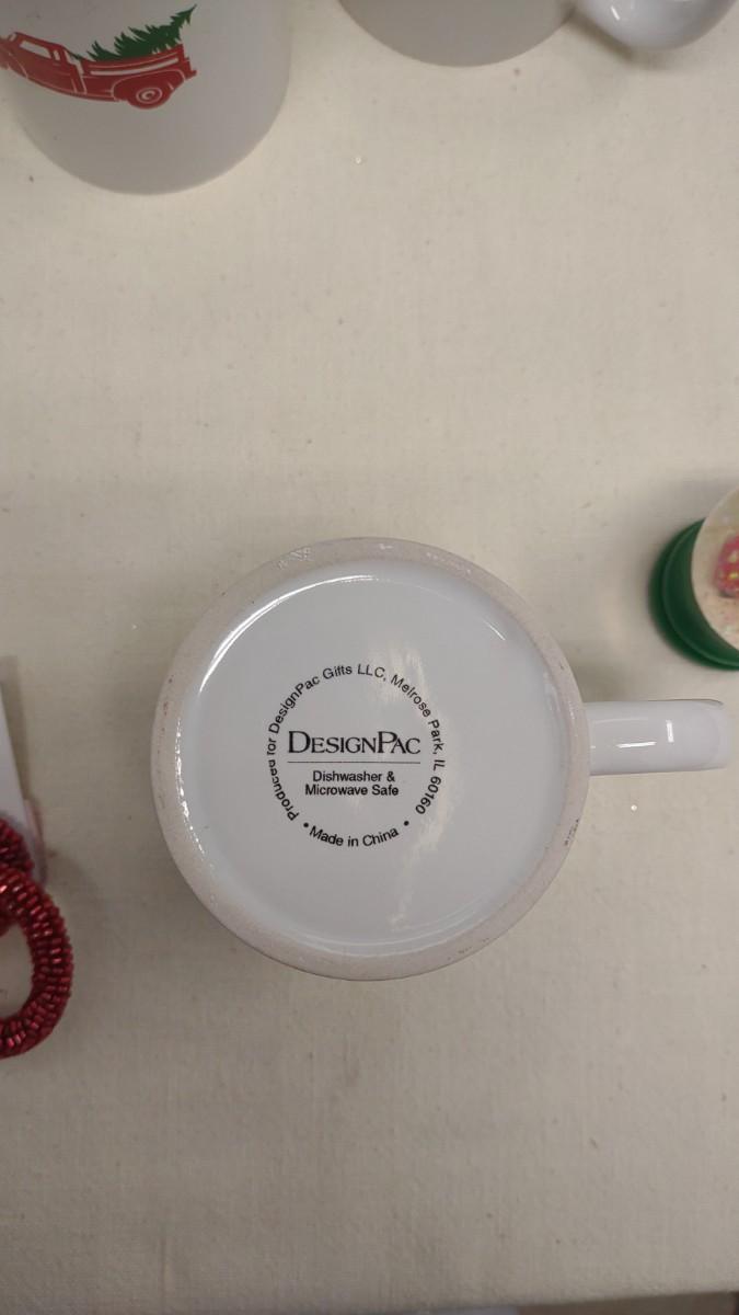 NEW THROW BLANKET, 4 COFFEE MUGS WITH A RED TRUCK AND CHRISTMAS TREE IN THE BACK, A MATCHING MINI SNOW GLOBE, A THREE PRONG ACORN CANDLESTICK HOLDER, AND LASTLY A PAIR OF RED EARRINGS BY ANNA AND AVA