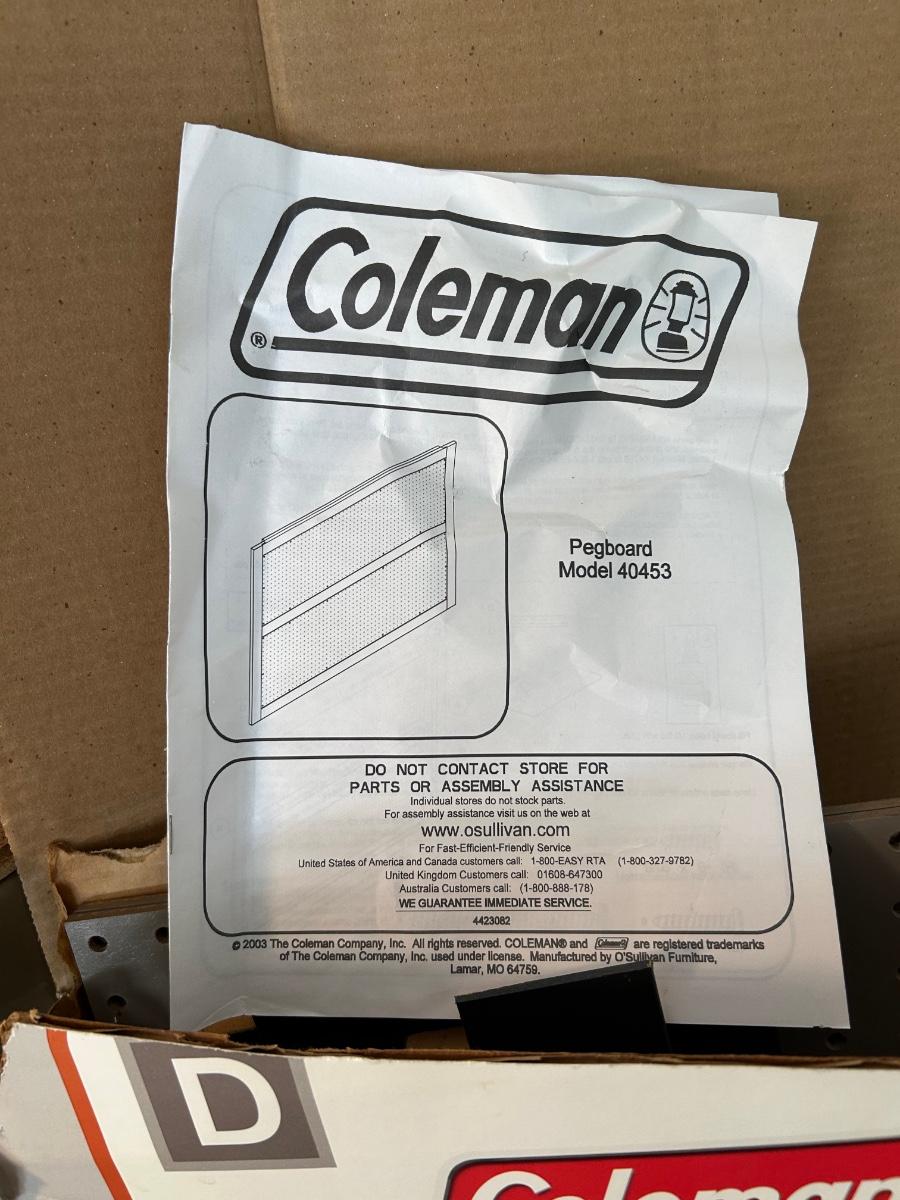 Lot 184. Coleman PegBoard & Frame
