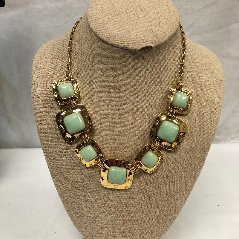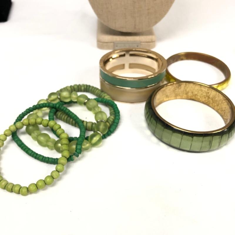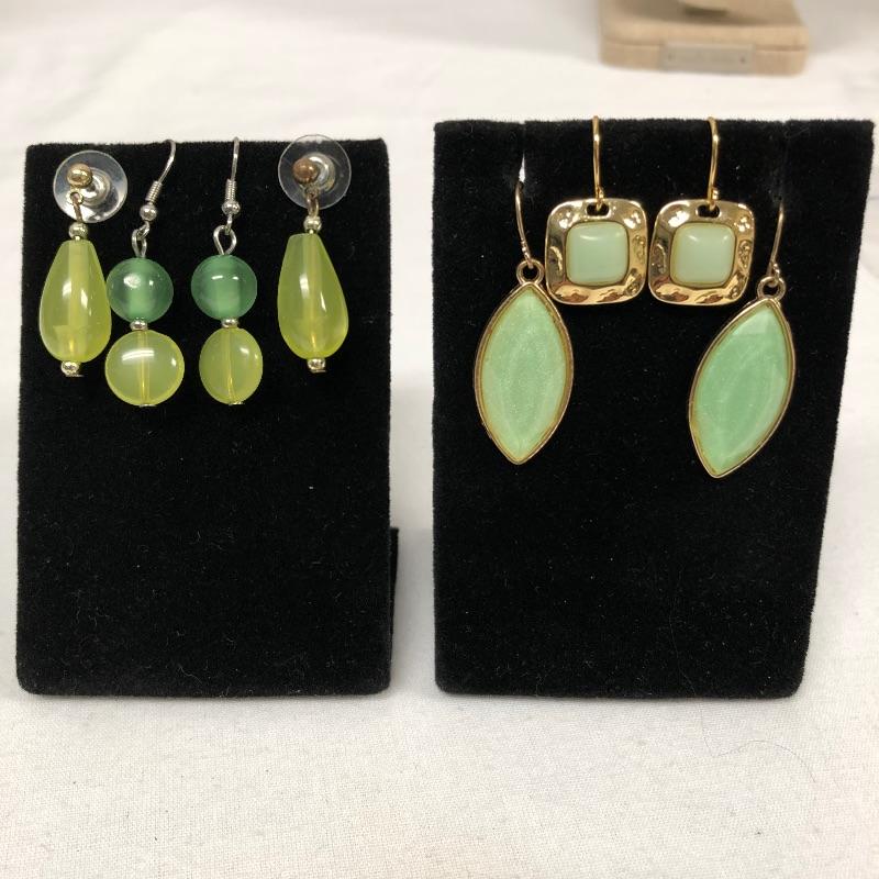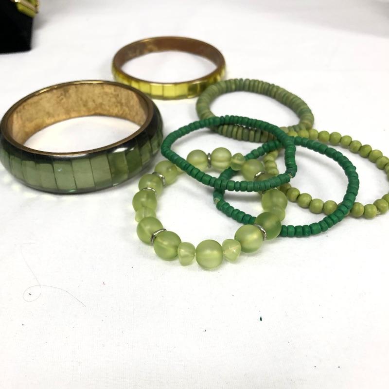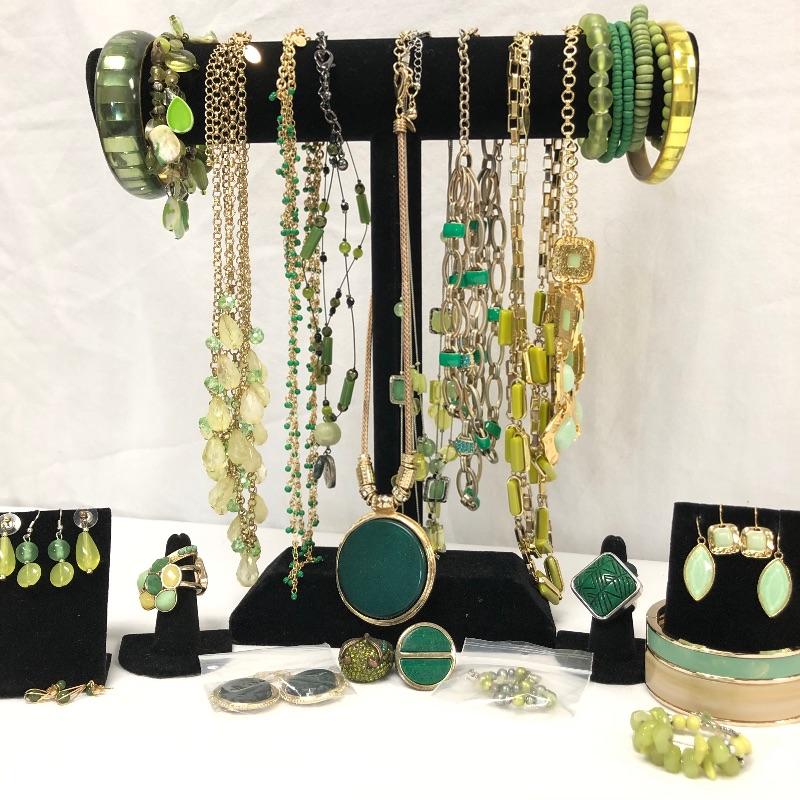 Your friends will be green with envy with this large assortment of many shades of green necklaces, earrings and bracelets. Too much to list, see images for more information.
