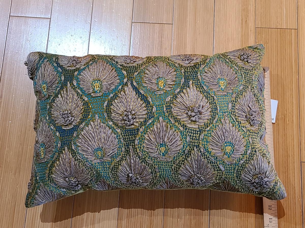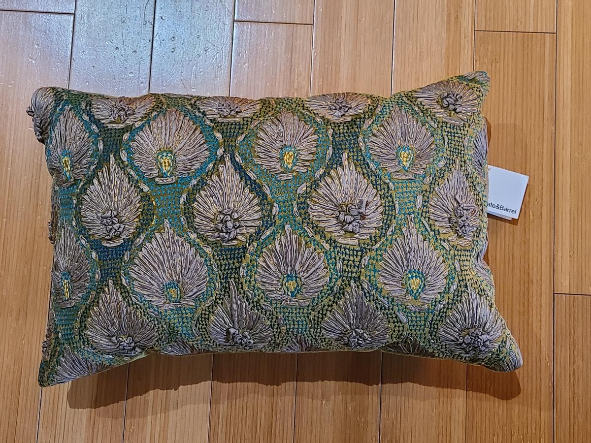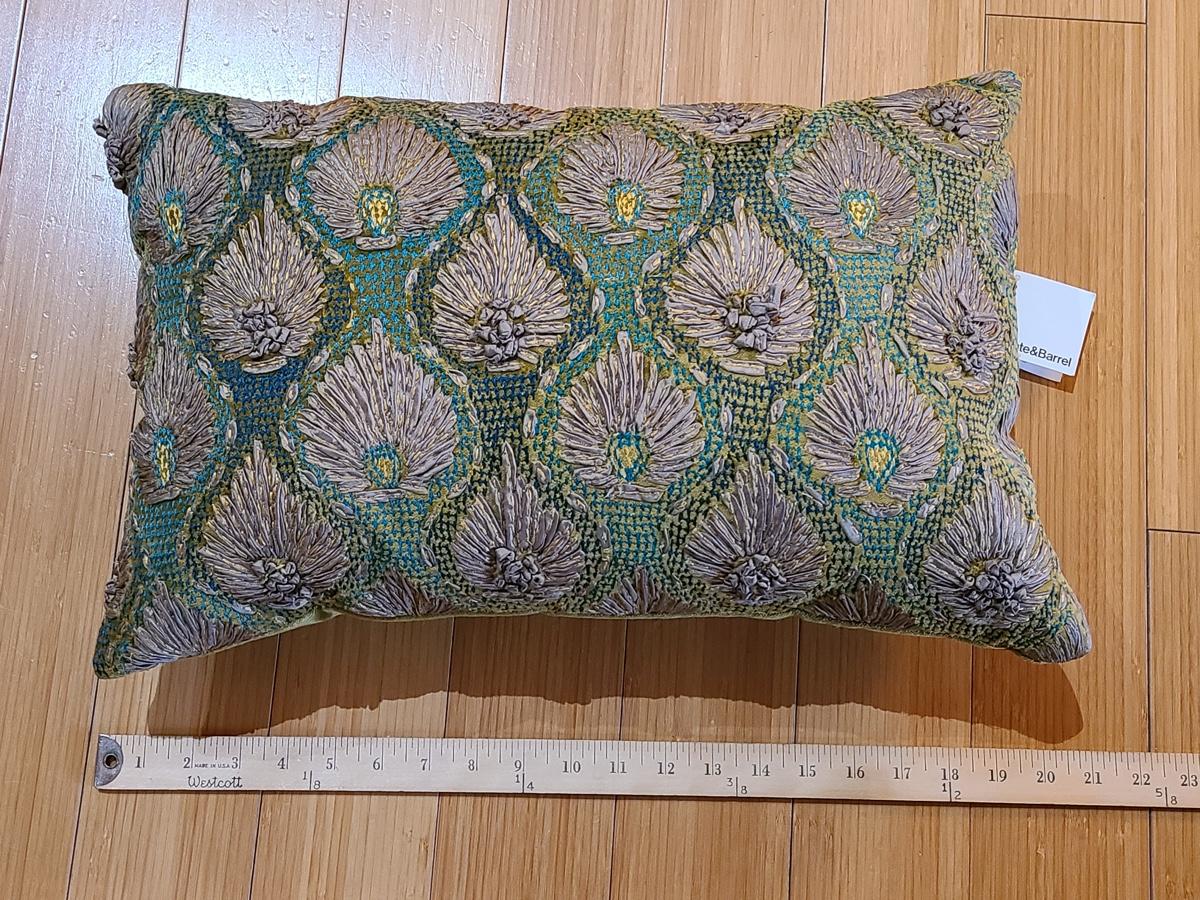 Lot 184: New Crate & Barrel "Midia" Accent Pillow (Peacock Feather Design Greens/Teals)
