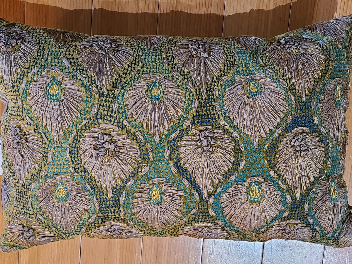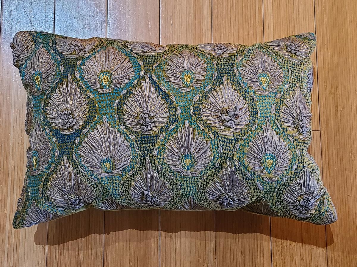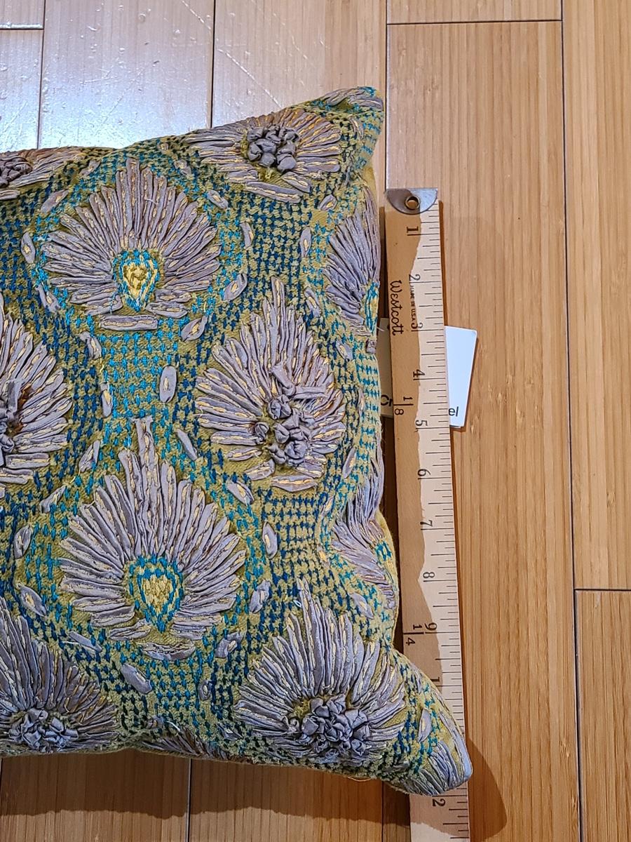 Lot 184: New Crate & Barrel "Midia" Accent Pillow (Peacock Feather Design Greens/Teals)