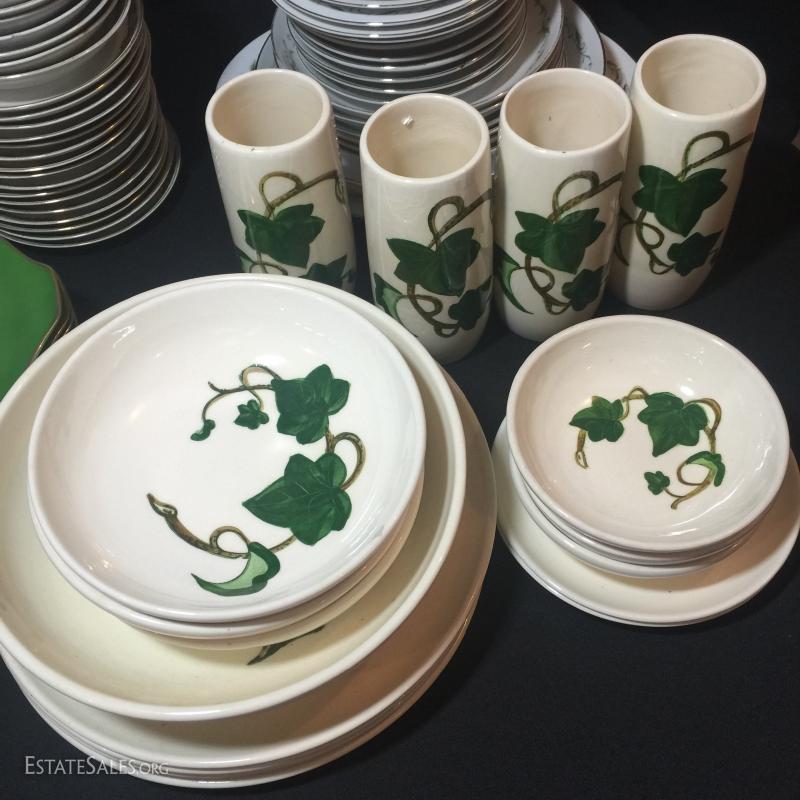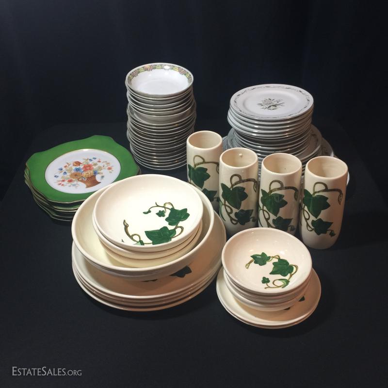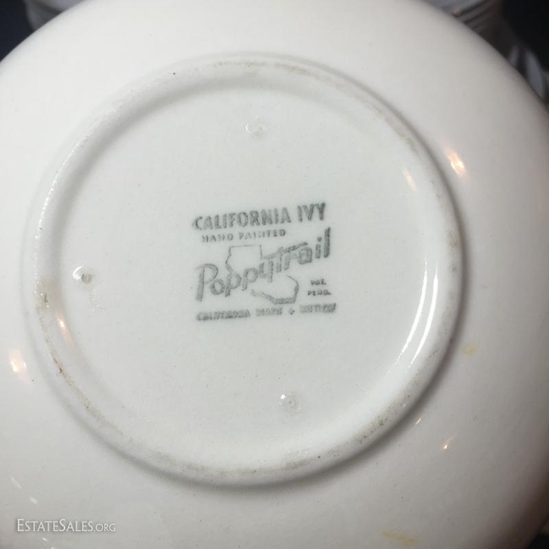 Poppy Trail: 4 tumblers, 4 plates, 3 cereal bowls, 2 small plates, 1 serving bowl.