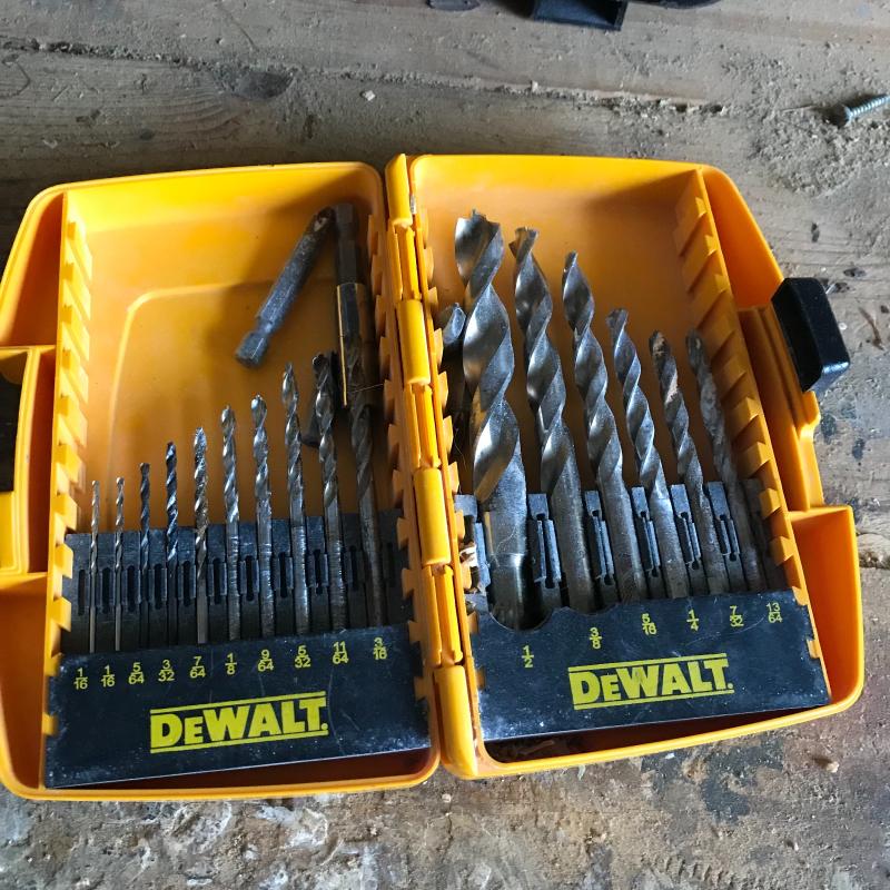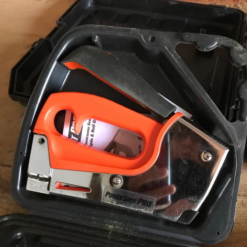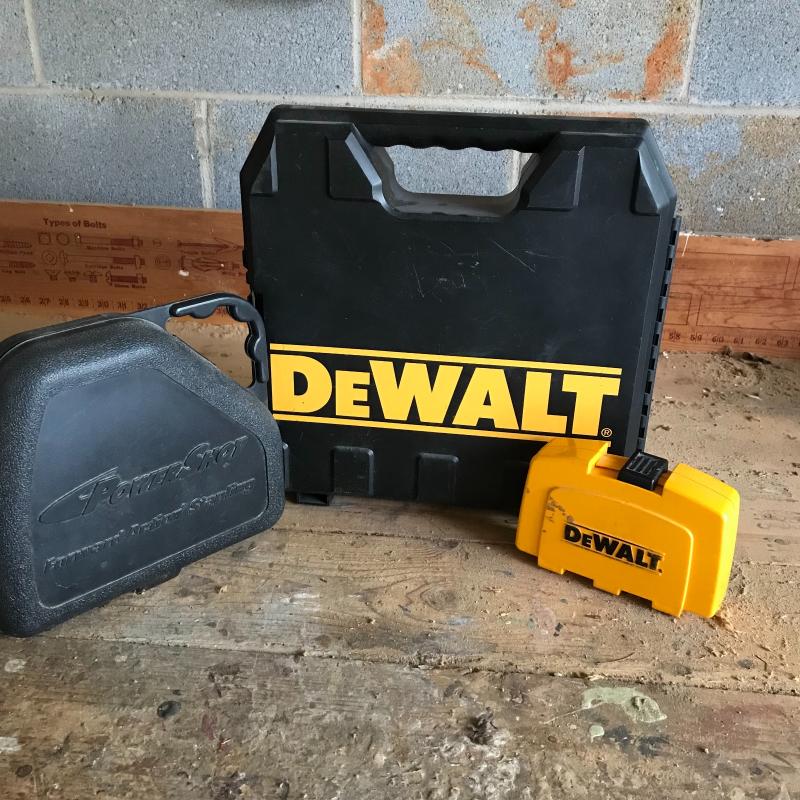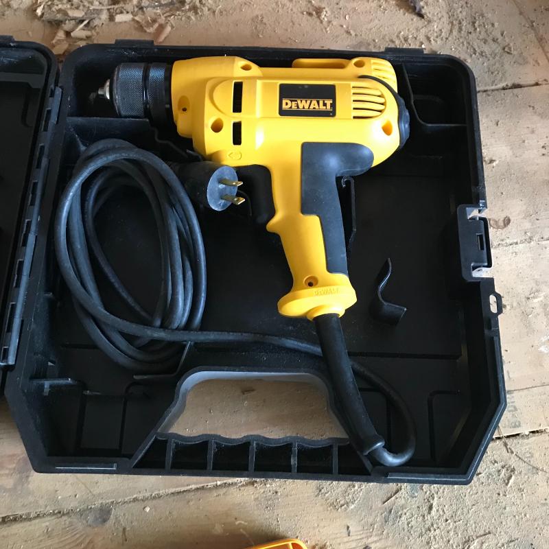 Stapler with case, electric DeWalt 115 drill with case and drill bits in case. Lot available for local pick up in Flat Rock, NC only.