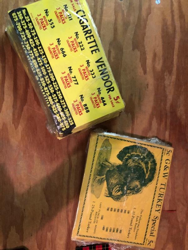 Punch Board Display Material: 2 bundles partially sealed large stack: Cigarette vendor and G&W turkey speciaL: Vintage used condition